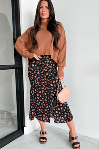 Fashionable Poise Button Detail Floral Midi Skirt (Black)