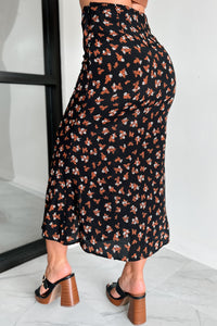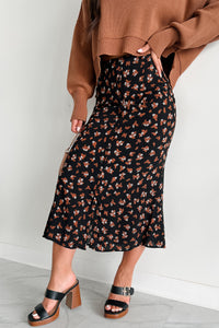 Fashionable Poise Button Detail Floral Midi Skirt (Black) - NanaMacs