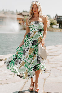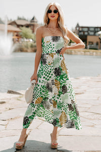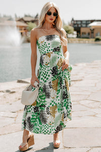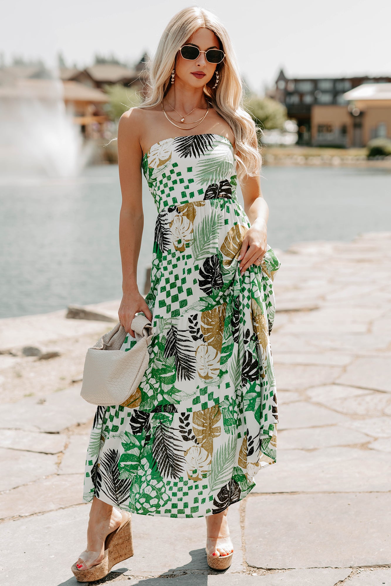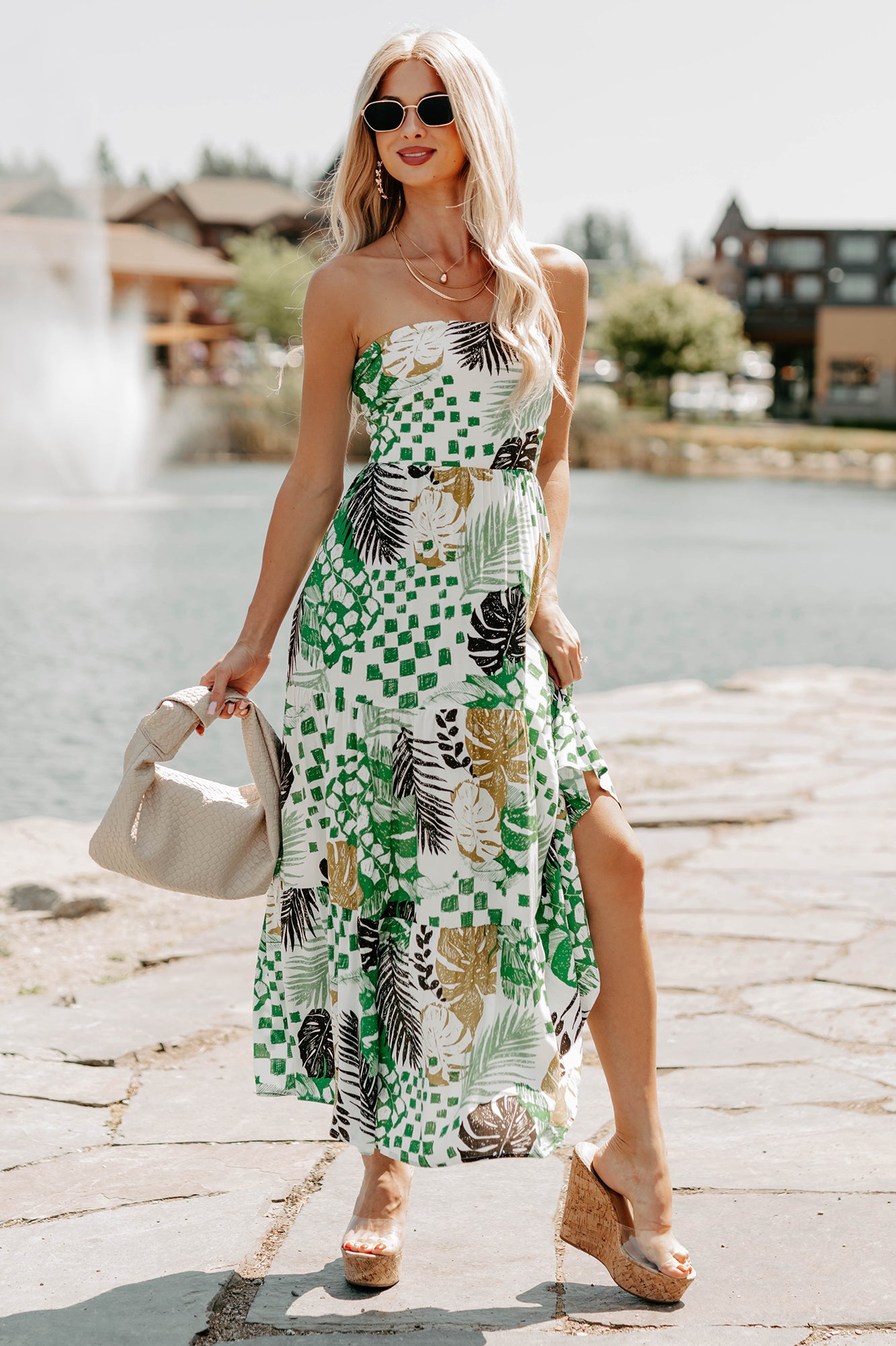 Feel It First Strapless Leaf Print Maxi Dress (Ivory/Green) - NanaMacs