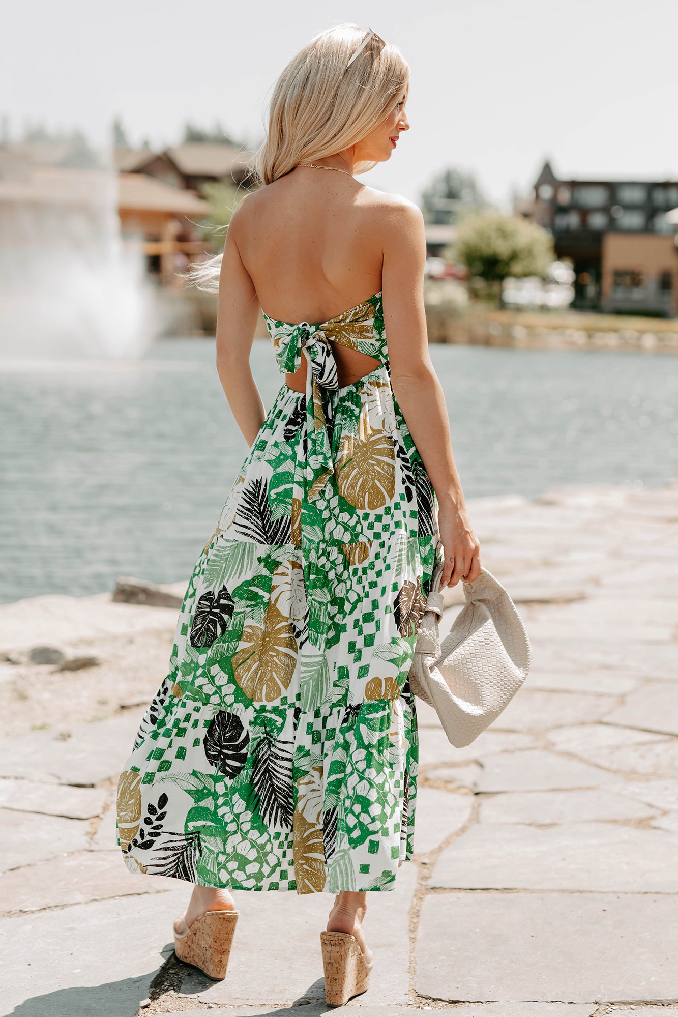 Feel It First Strapless Leaf Print Maxi Dress (Ivory/Green)