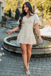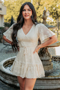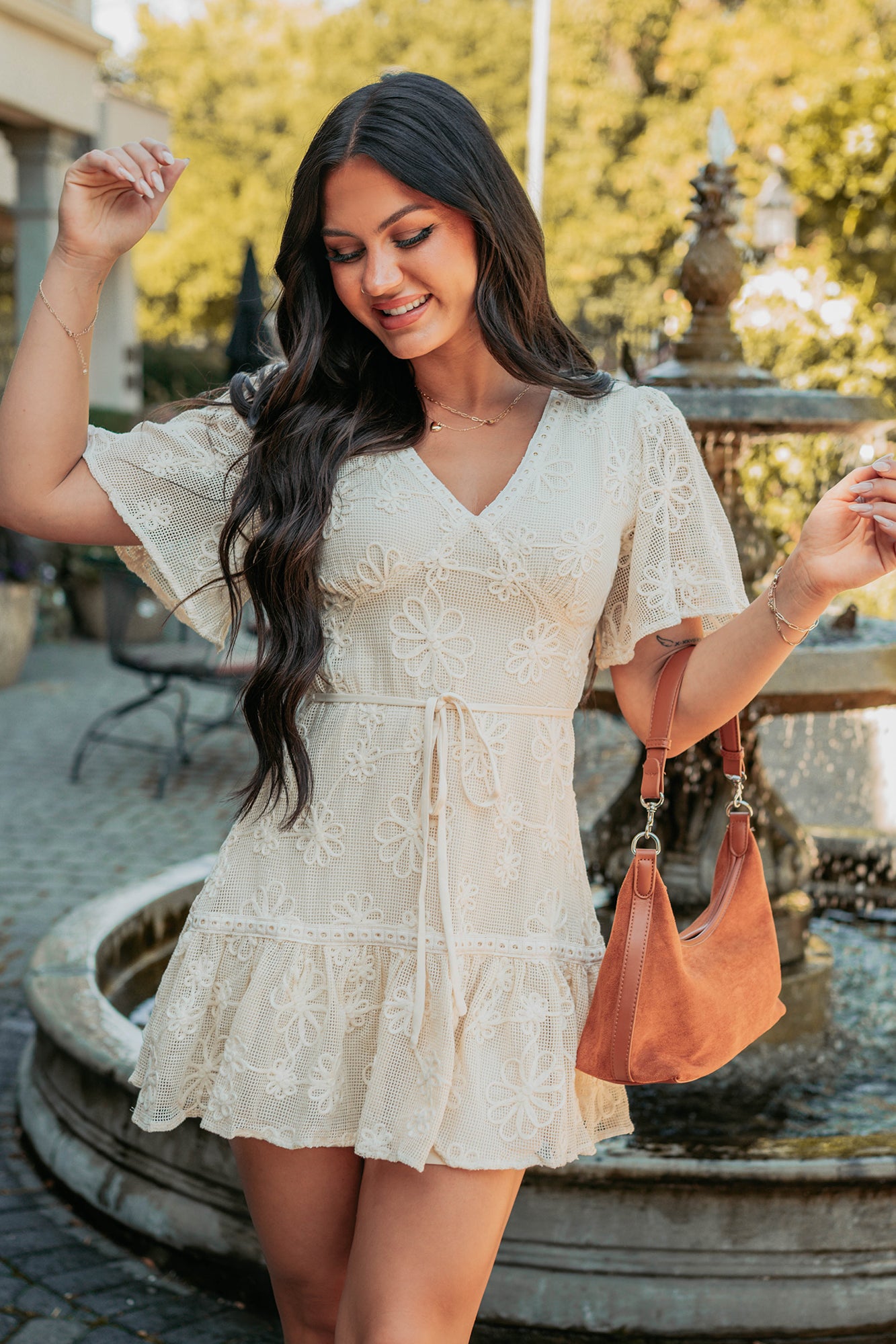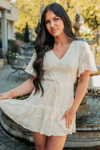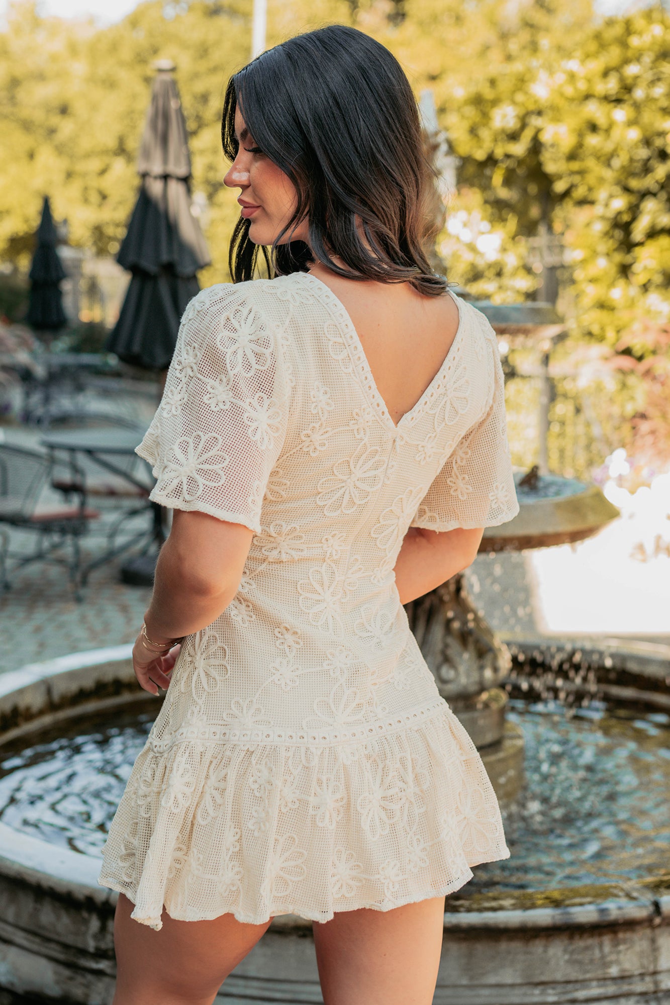 Feeling Charming V Neck Floral Mini Dress (Cream)