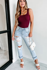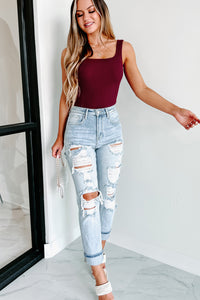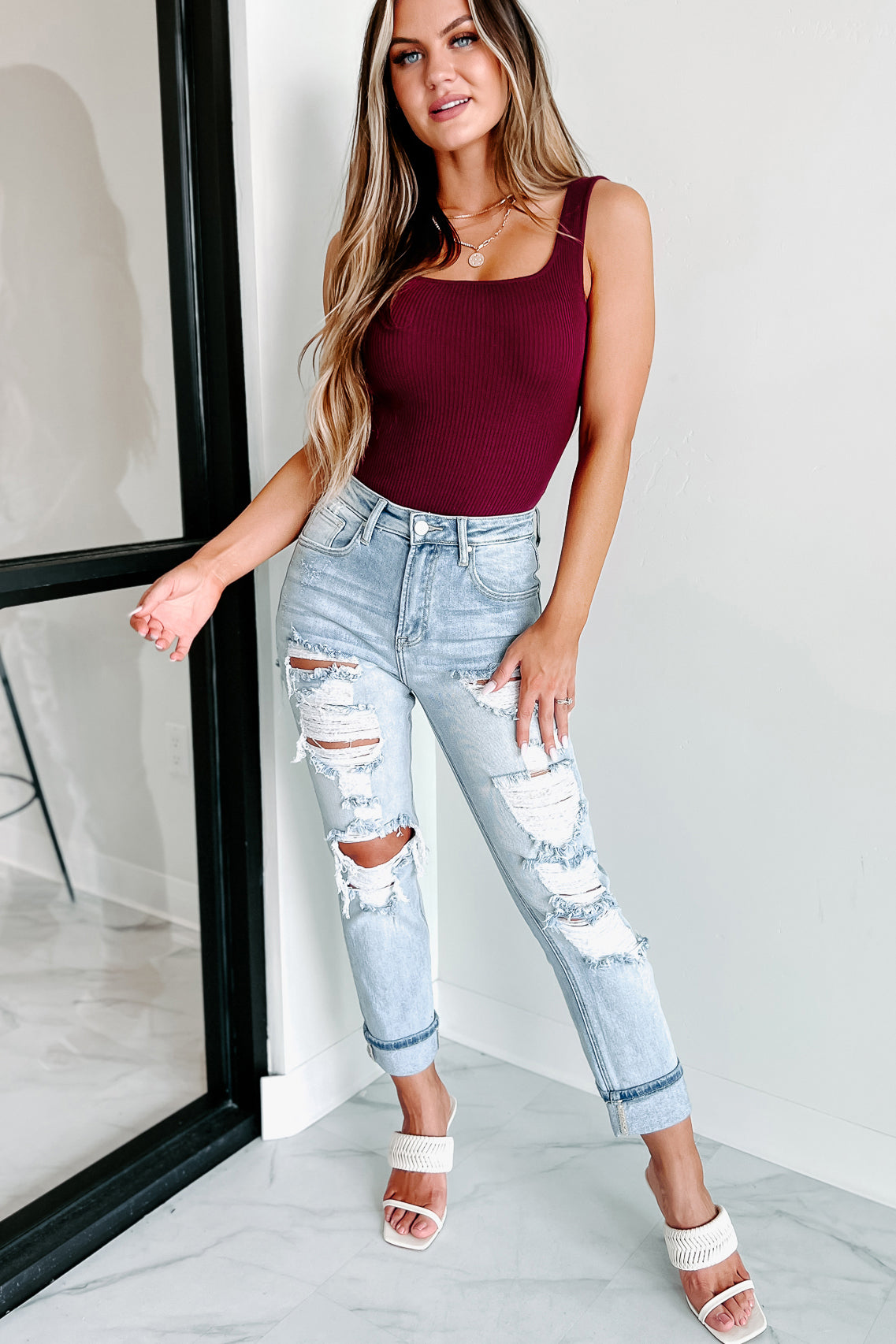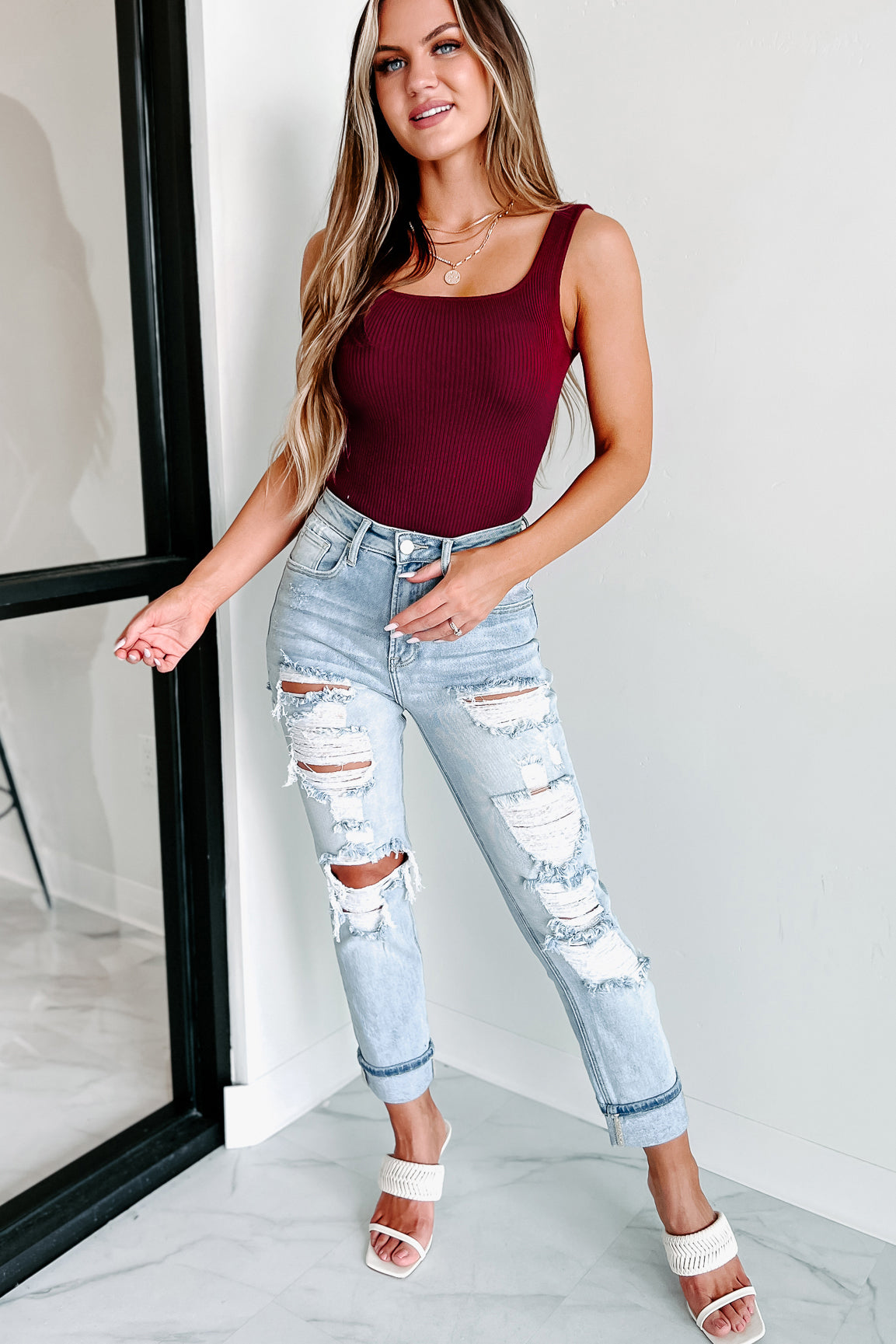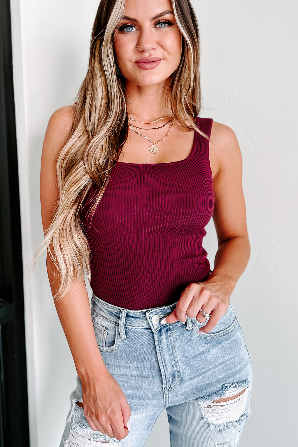 Feeling Gifted Sweater Knit Bodysuit (Wine) - NanaMacs