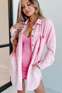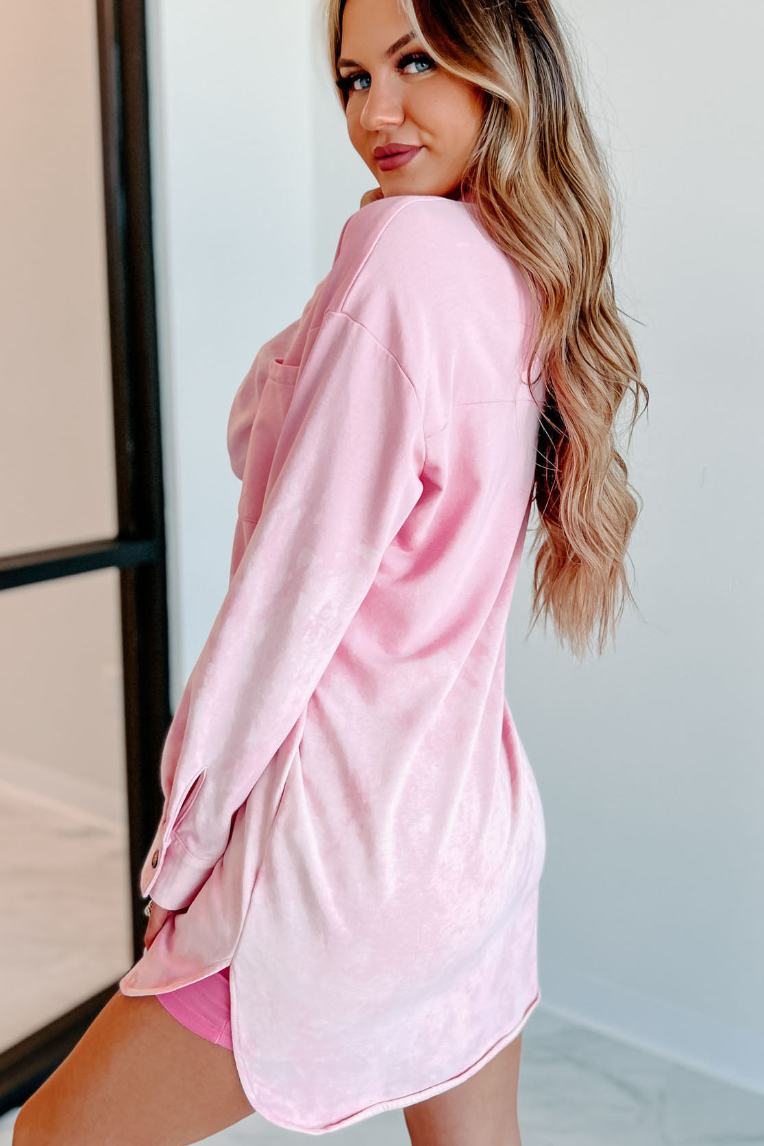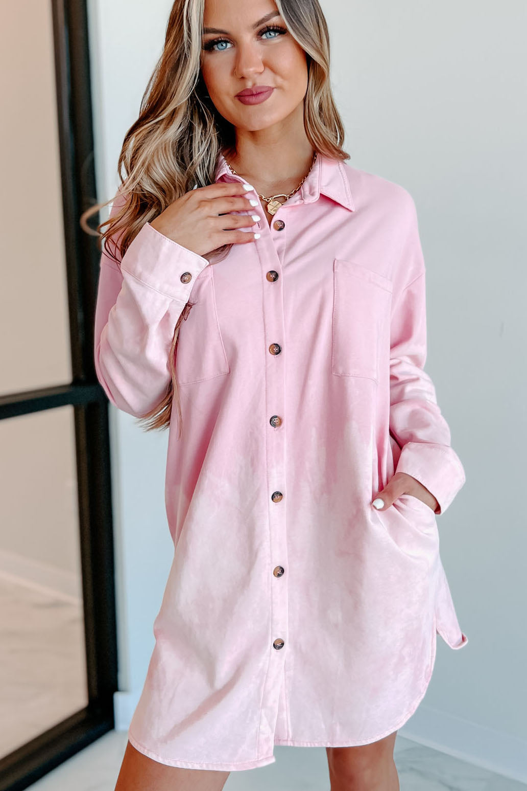 Feeling Light Hearted Bleach Dye Shacket Dress (Pink)