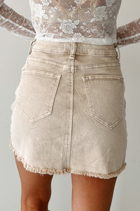 Feeling Social Zenana Denim Mini Skirt (Sand Beige) - NanaMacs