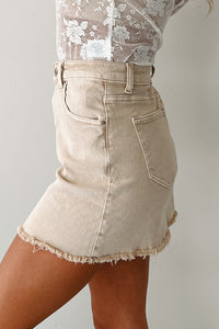 Feeling Social Zenana Denim Mini Skirt (Sand Beige)