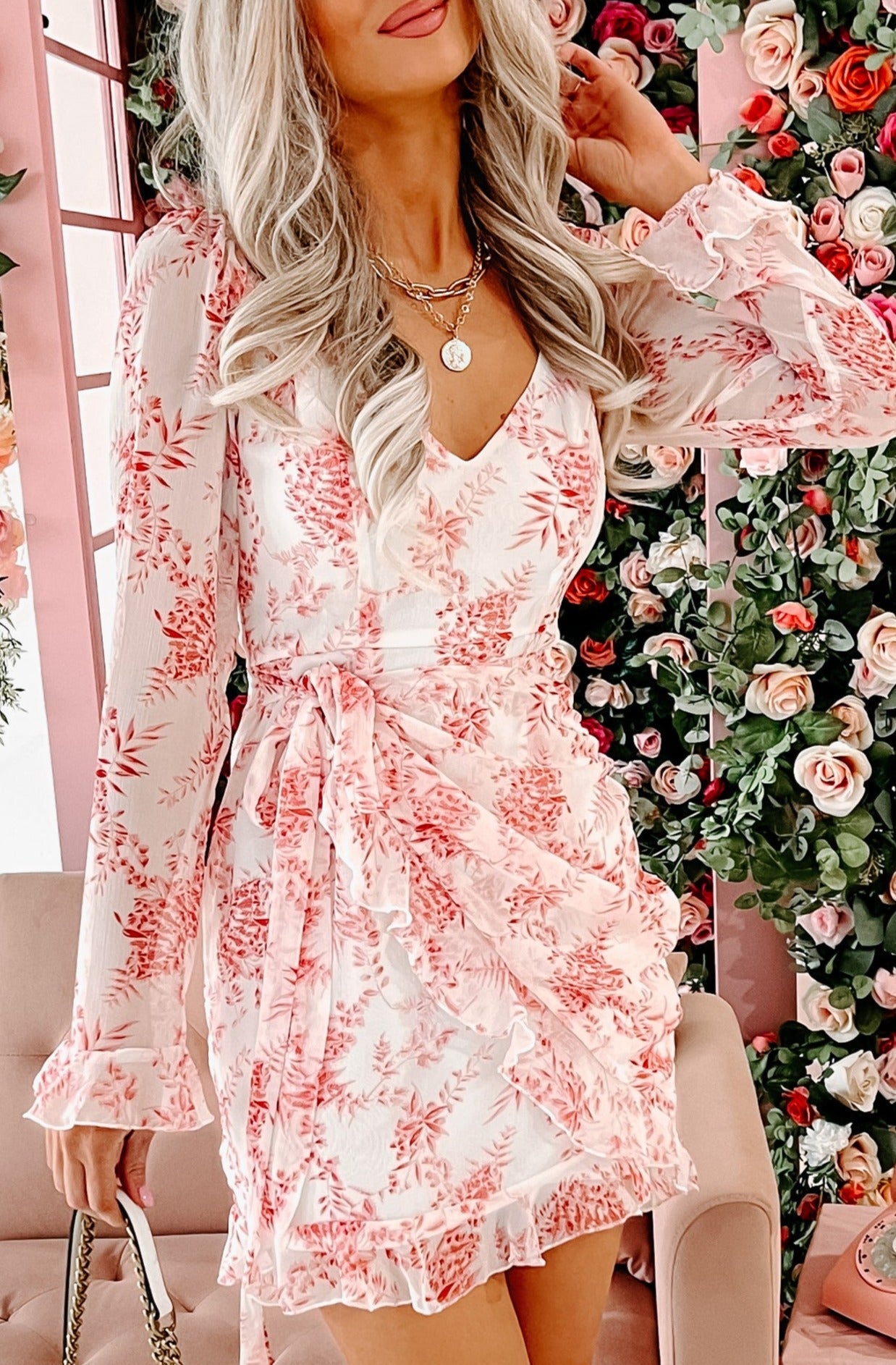 Feel Oh So Pretty In This Faux-Wrap, Botanical Print Dress!