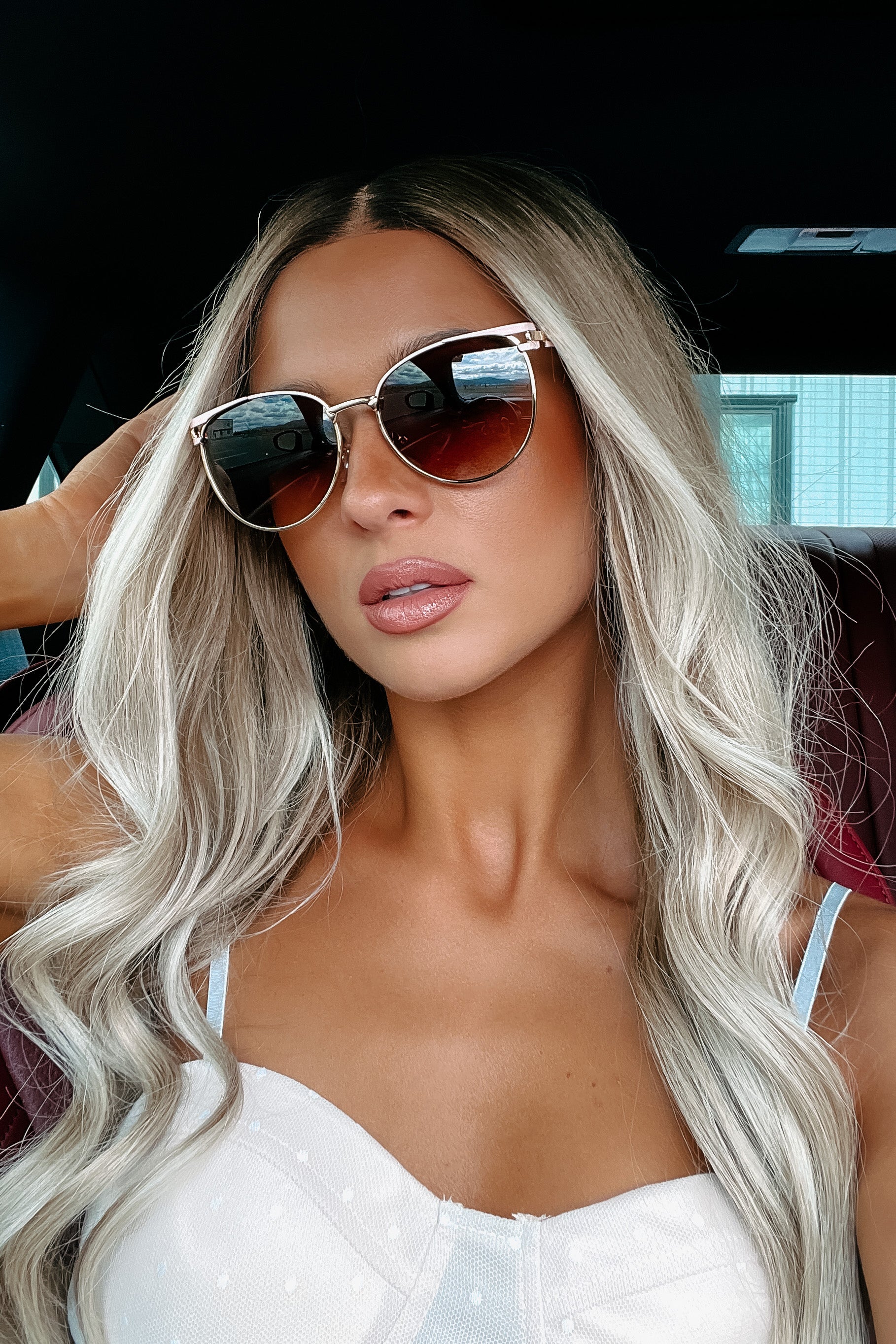 You'll Love These Peach, Cat Eye Sunnies With The Cut-Out Frames!