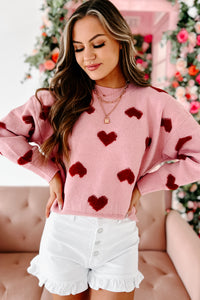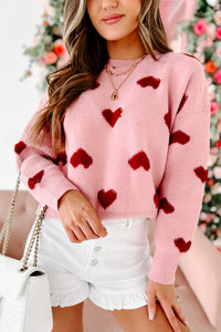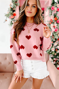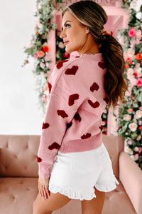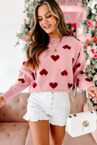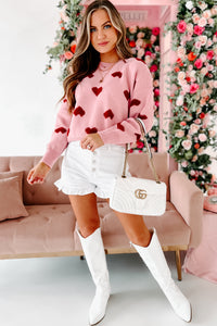 Filled With Love Heart Knit Sweater (Pink)