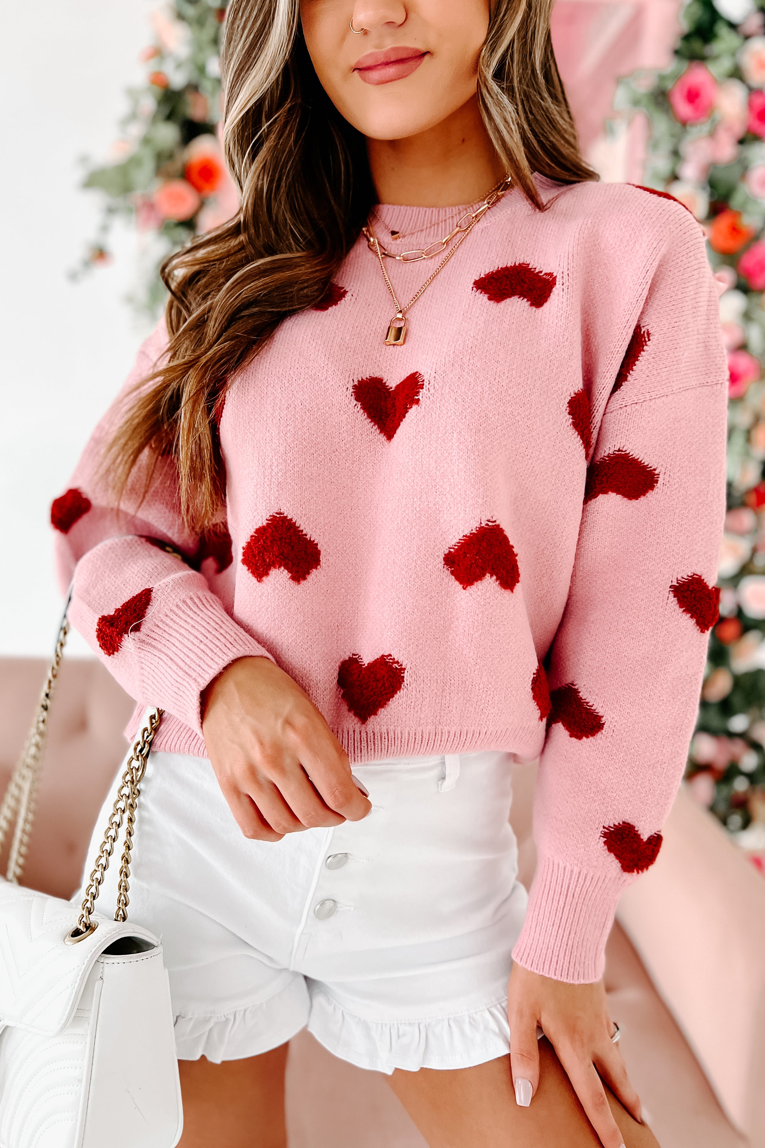 How Sweet Is This Pink & Red, Heart Knit Sweater?! It'd Be Perfect For Valentine's Day!