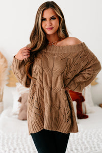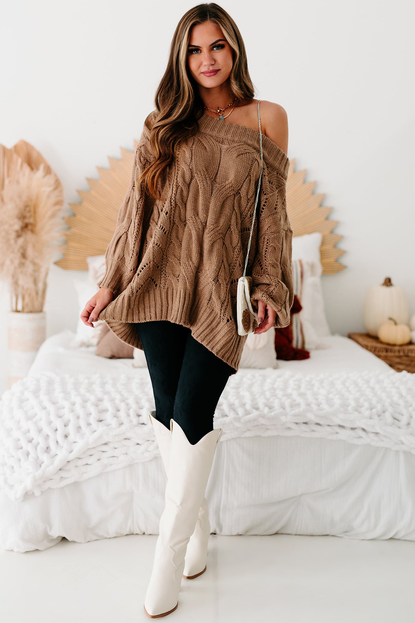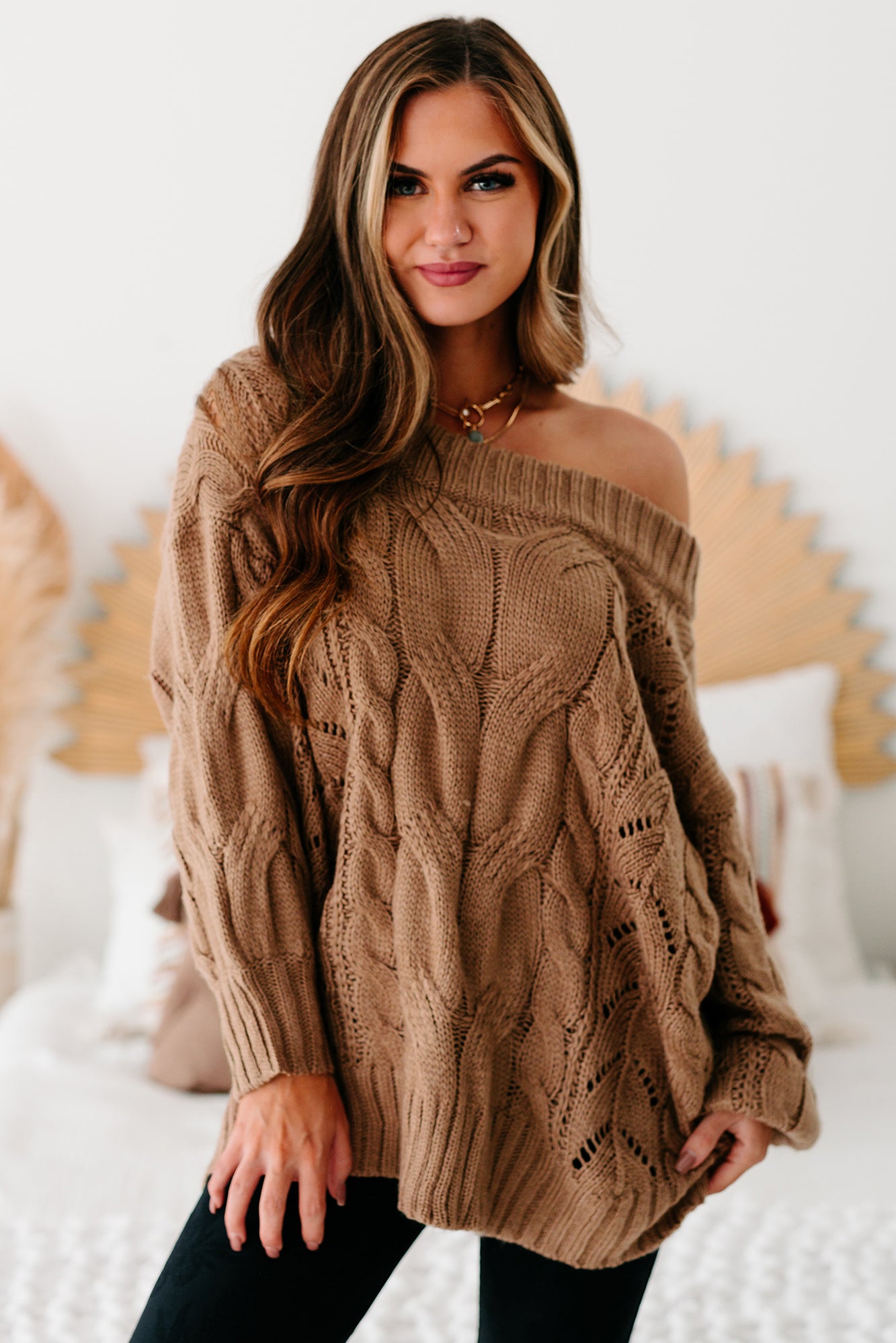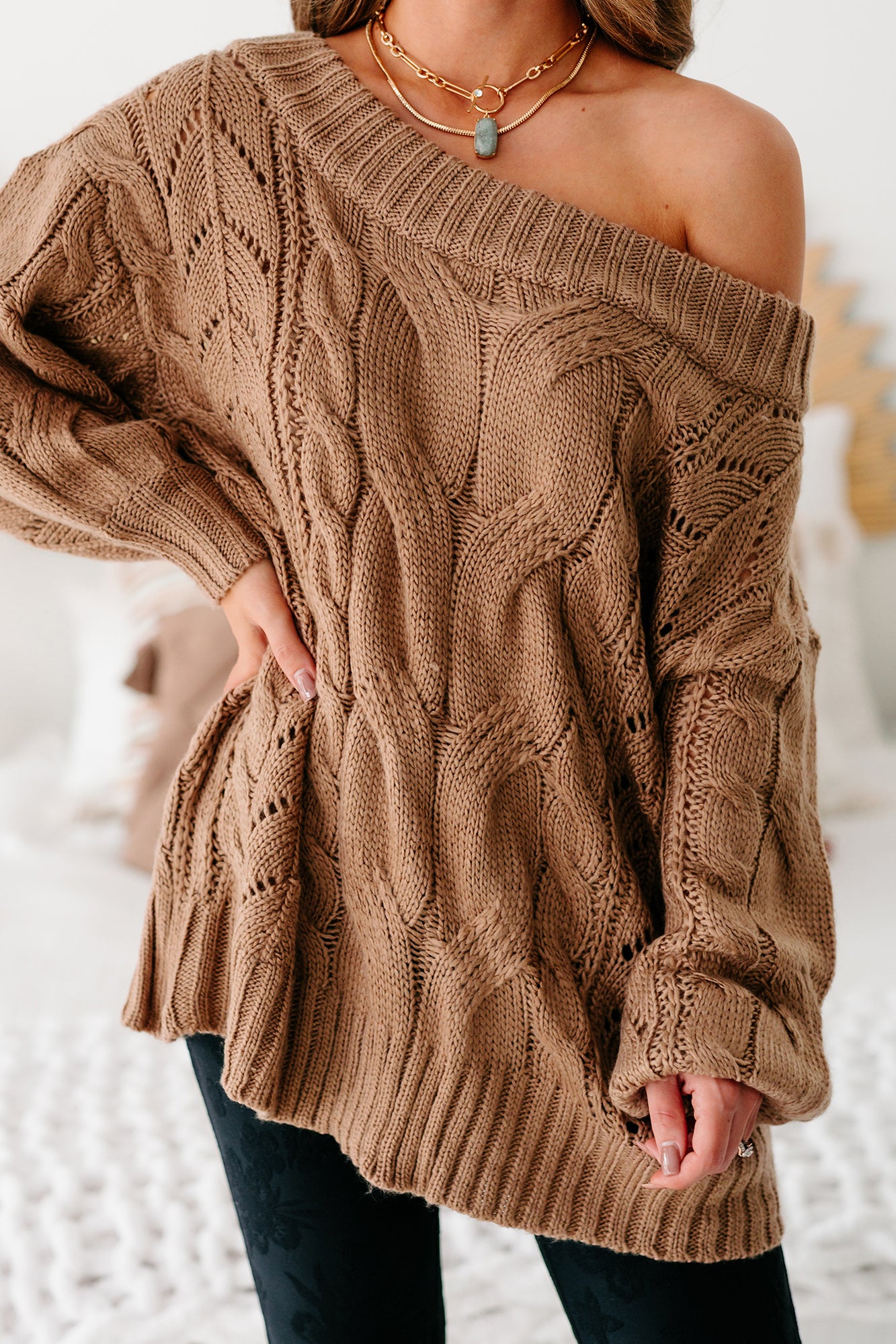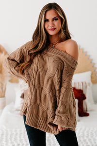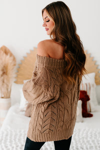 Finally Mine Cable Knit Off The Shoulder Sweater (Mocha)