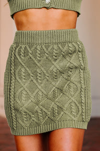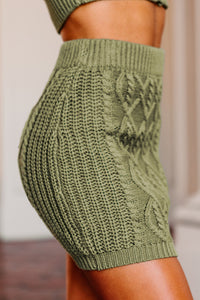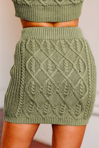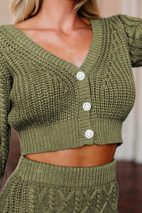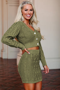 Look Cute & Put Together For Any Occasion In This Olive, Sweater Knit, Cropped Cardigan & Mini Skirt Set!
