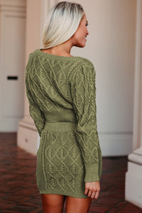 Finding Fulfillment Cable Knit Cardigan & Skirt Set (Olive)