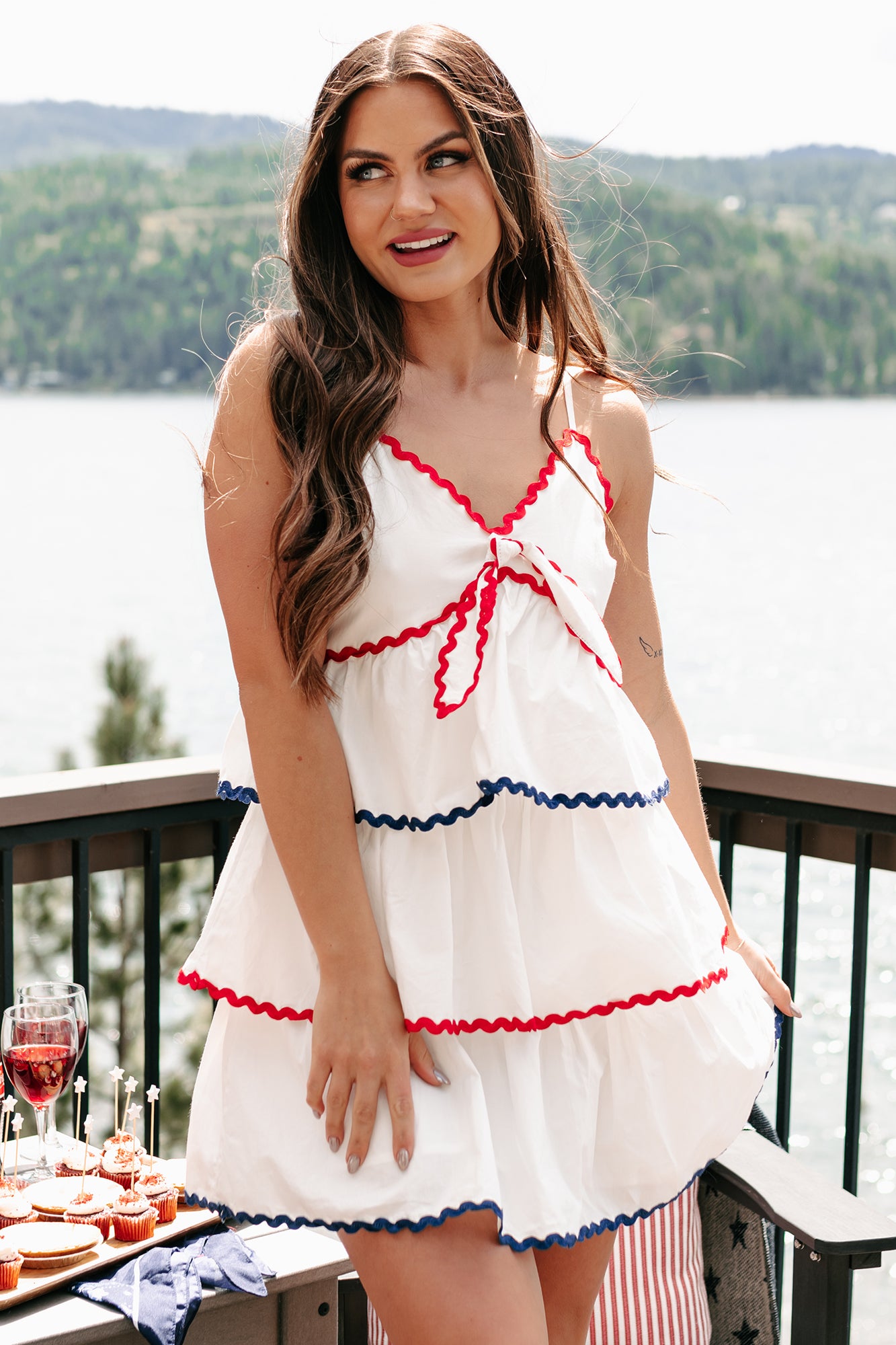 Fireworks & Freedom Tiered Scallop Mini Dress (White/Multi)