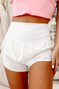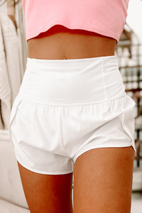 Fitness Fanatic High Waisted Athletic Shorts (White)