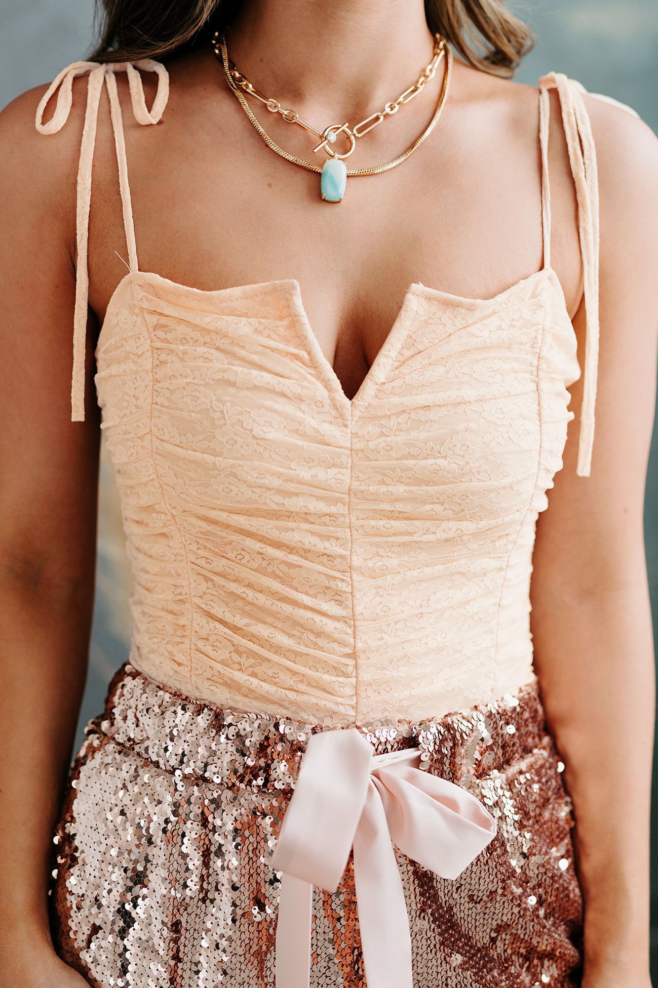 Turn Up The Heat With This Cream, Ruched Lace Bodysuit!