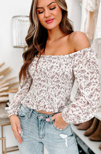 A Beautiful Creation Smocked Floral Crop Top (Ivory/Multi)