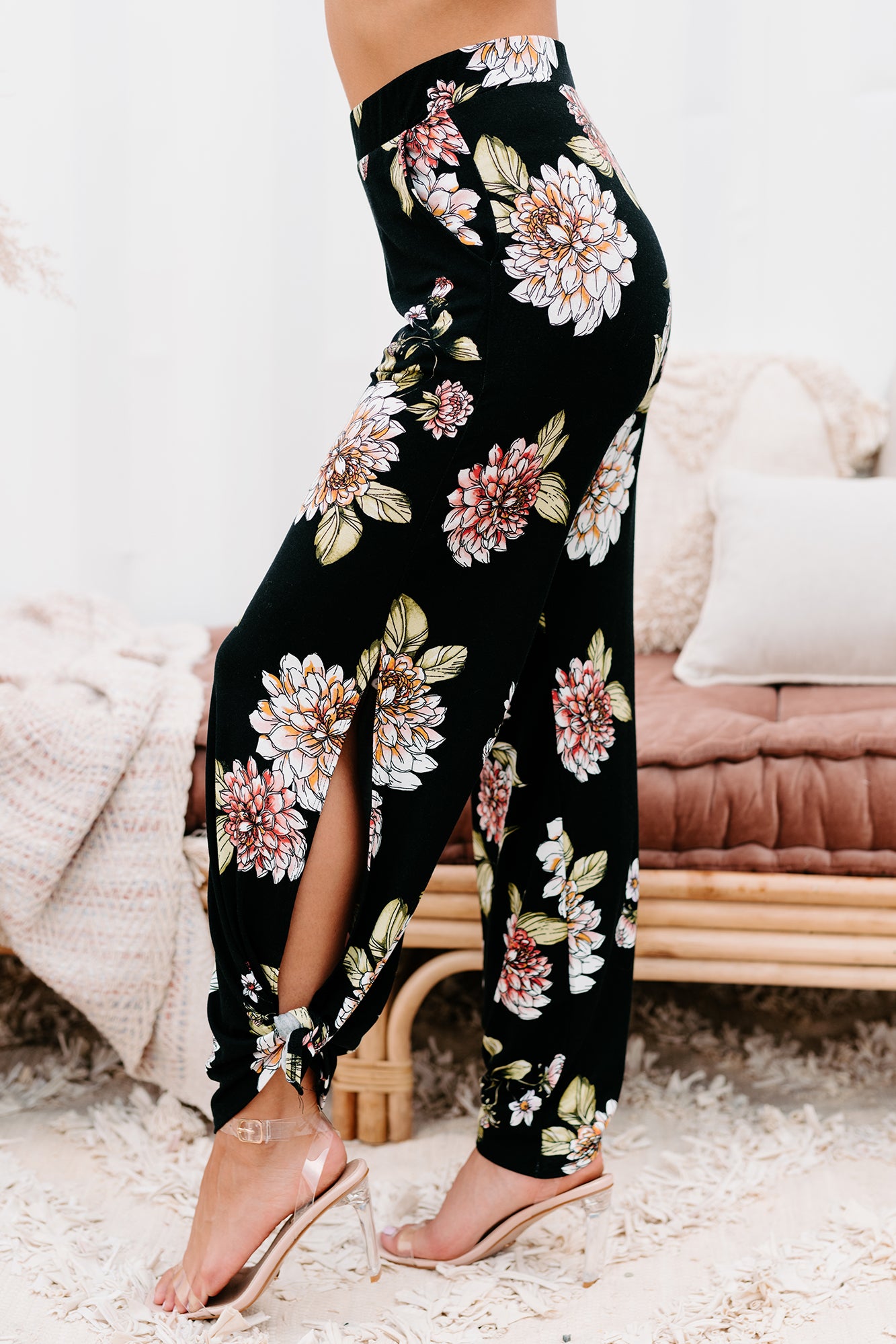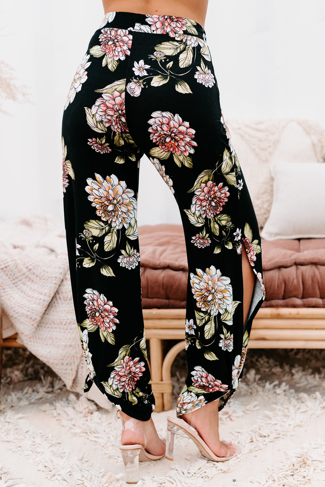 Floral Fever NanaMacs Original Split Leg Floral Print Pants (Black)