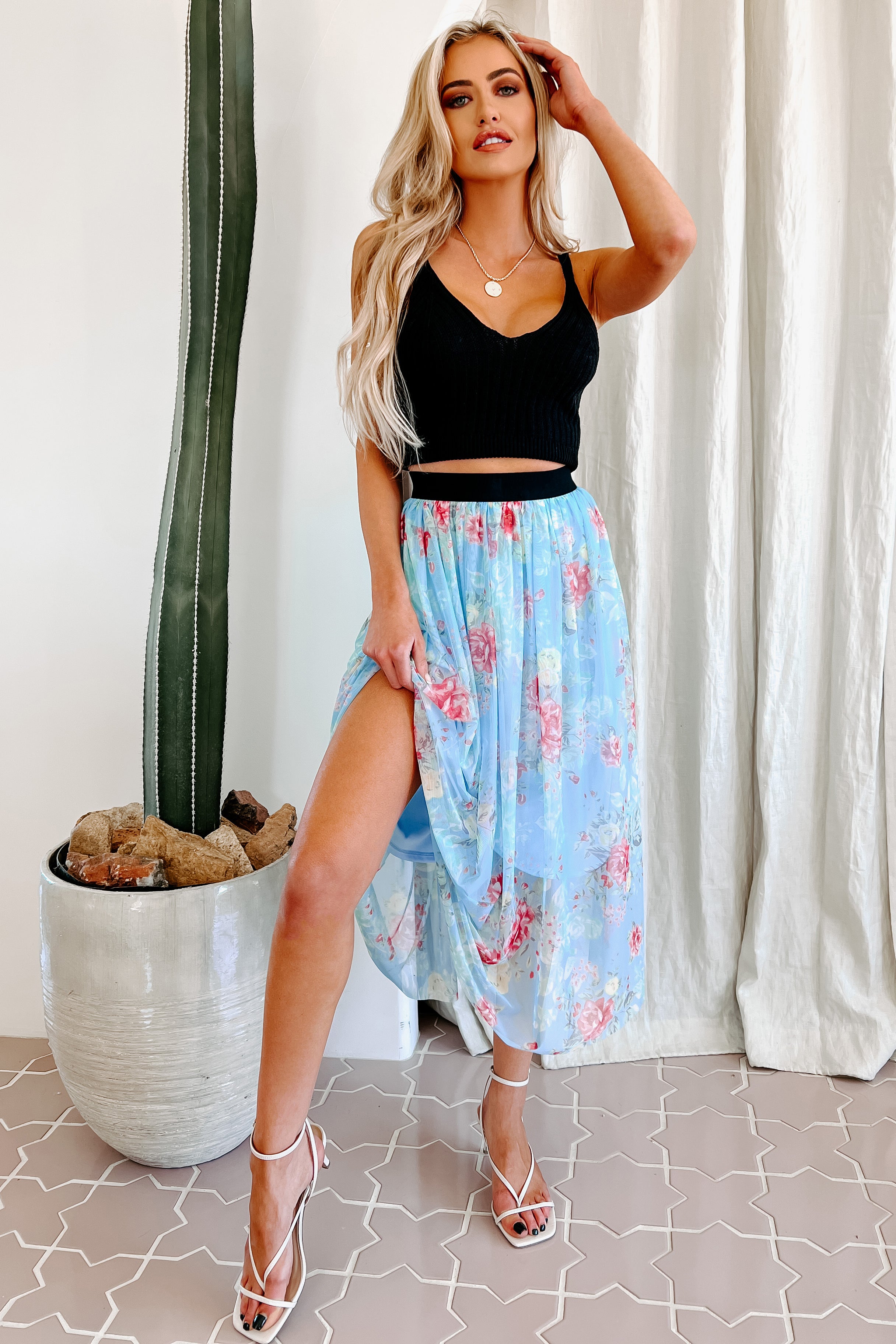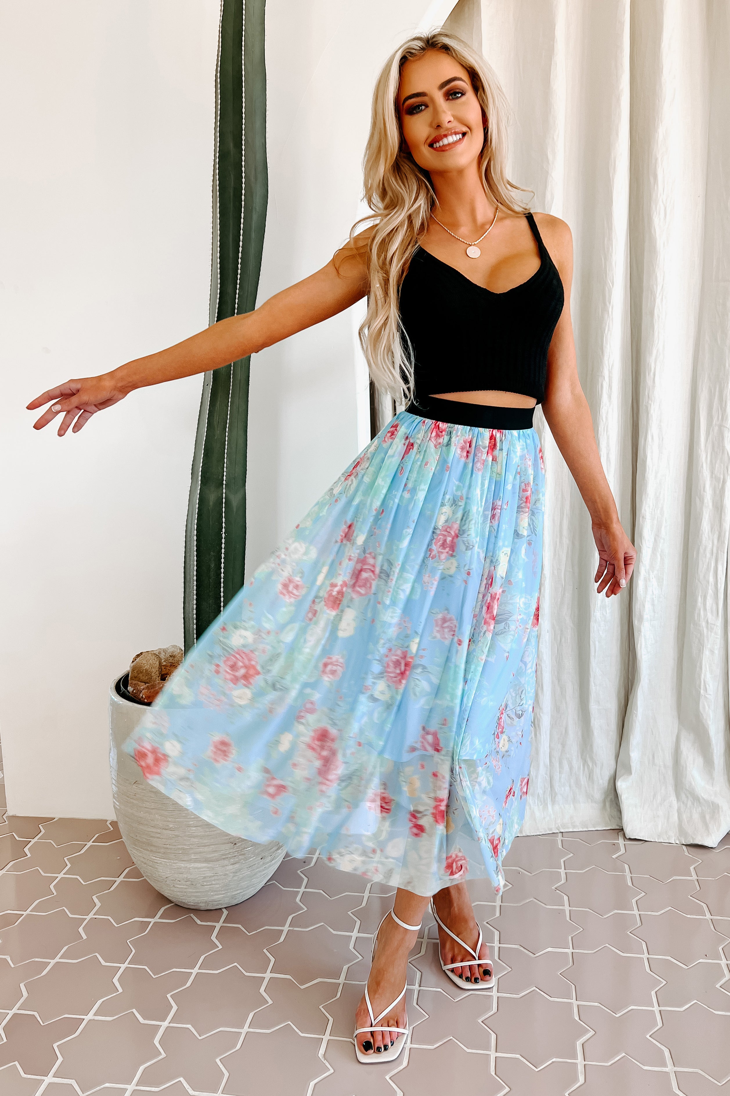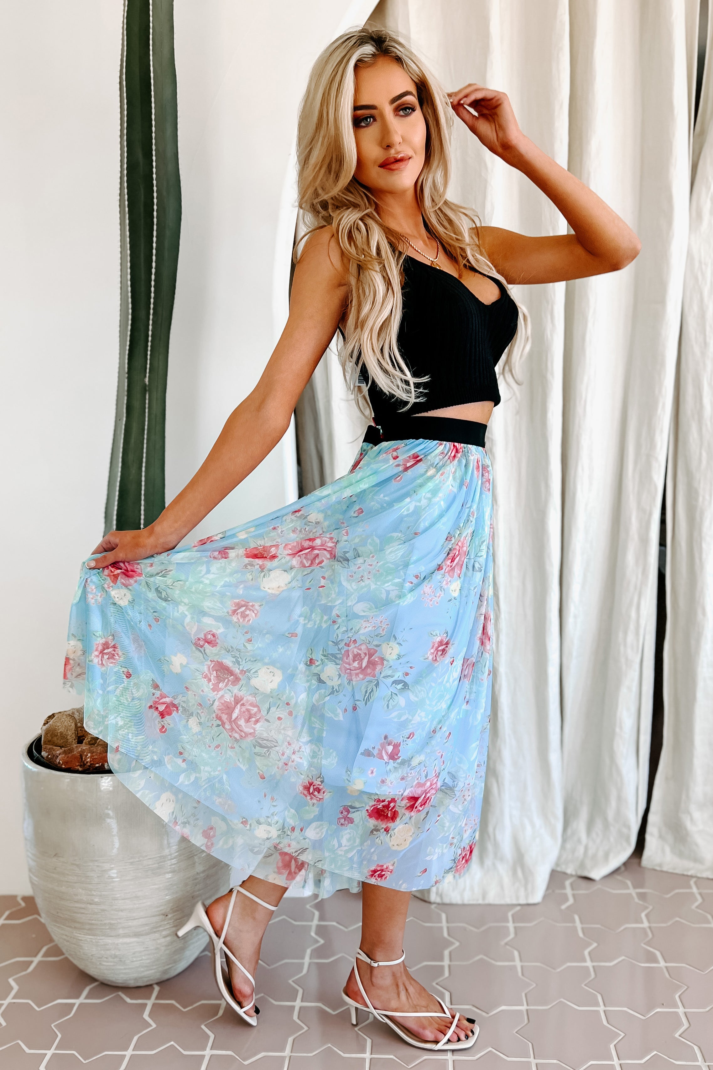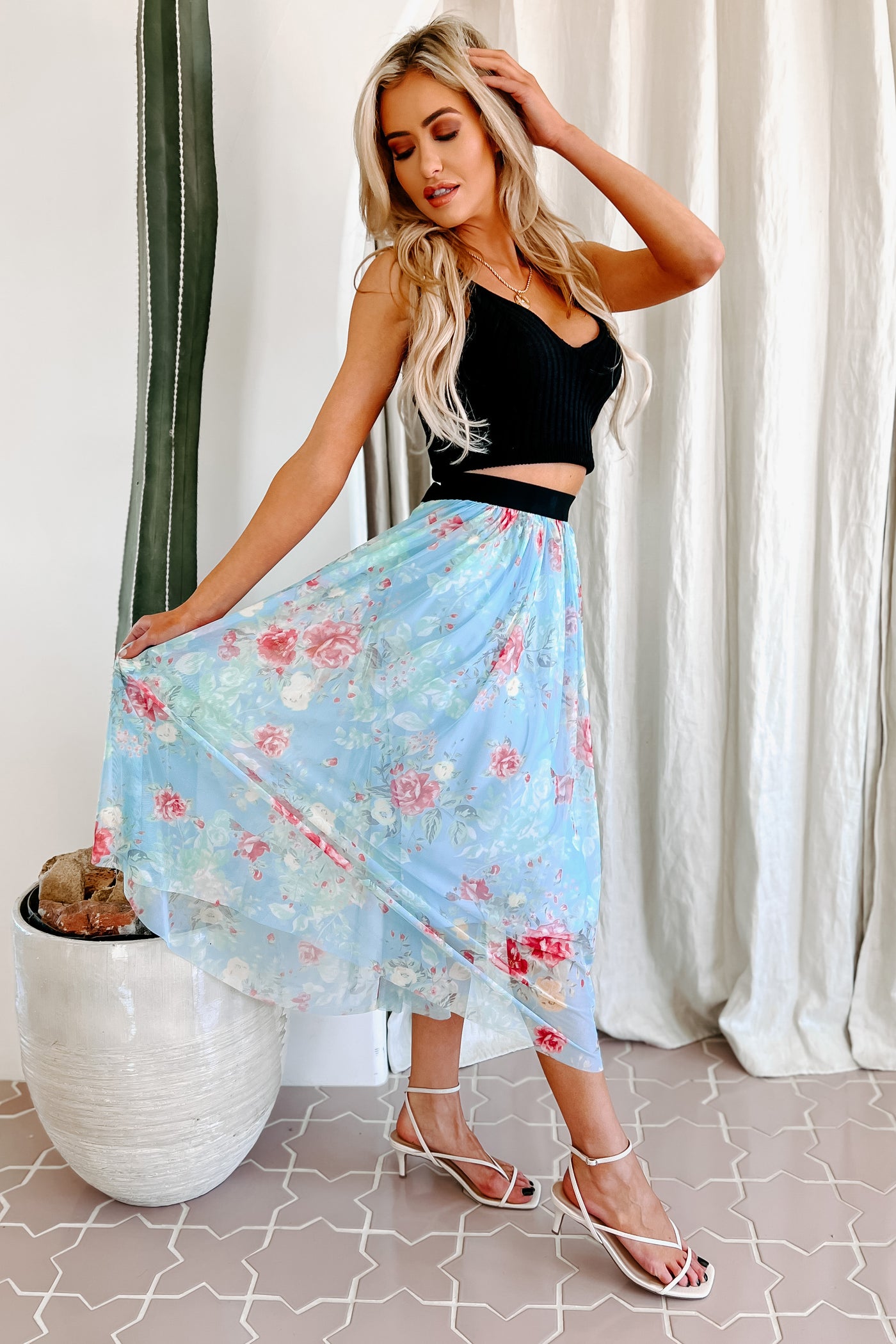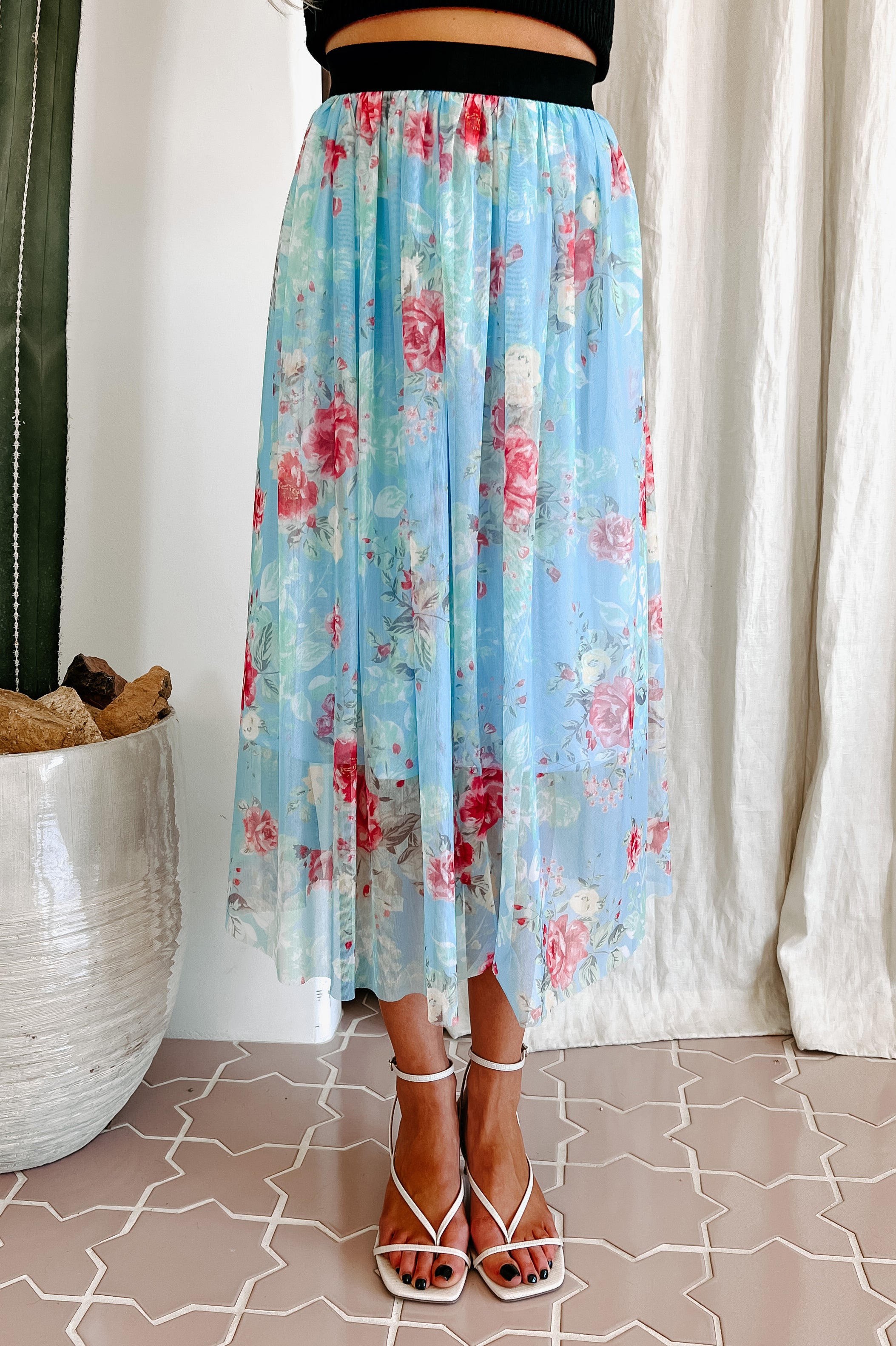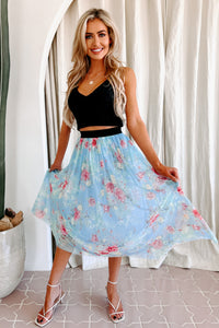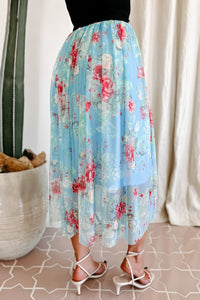 Floral Fixation Floral Midi Skirt (Blue) - NanaMacs