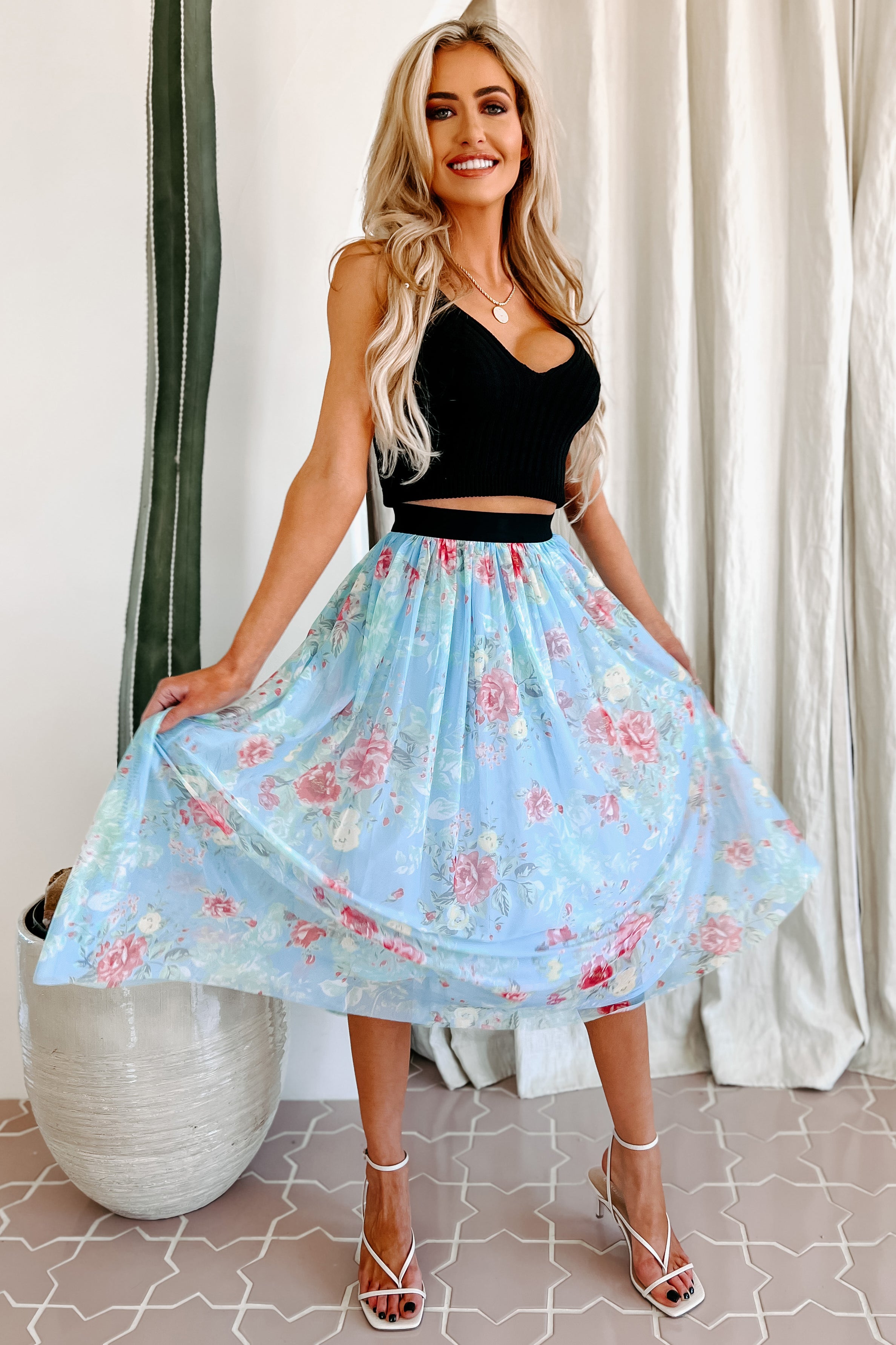 You Gotta Snag This Blue, Floral Midi Skirt! It'll Make You Feel Girly Yet Beautiful!