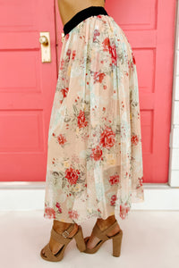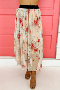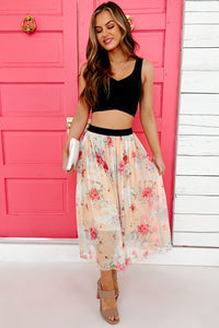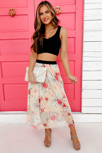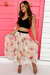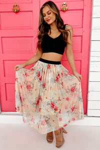 Floral Fixation Floral Midi Skirt (Peach) - NanaMacs