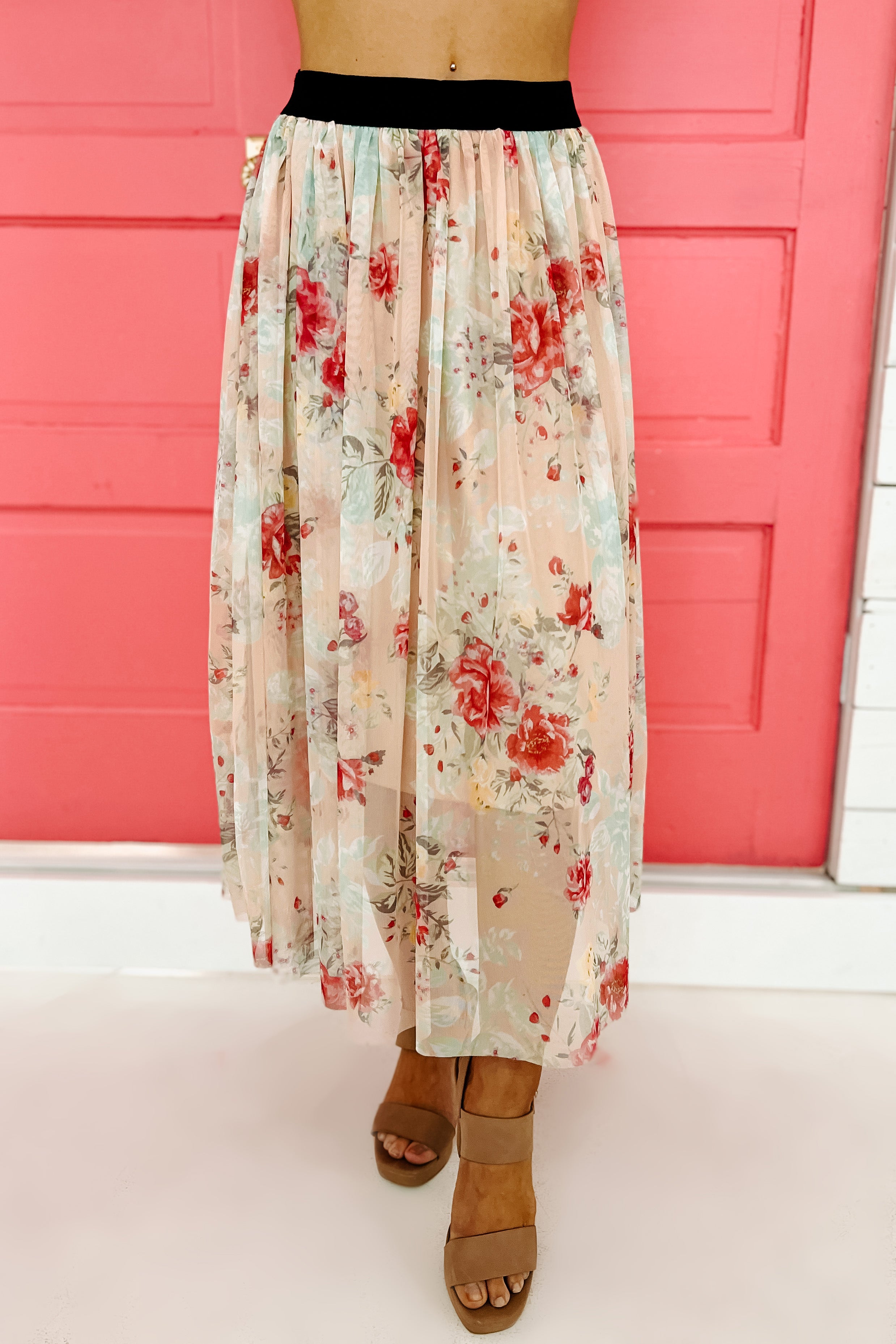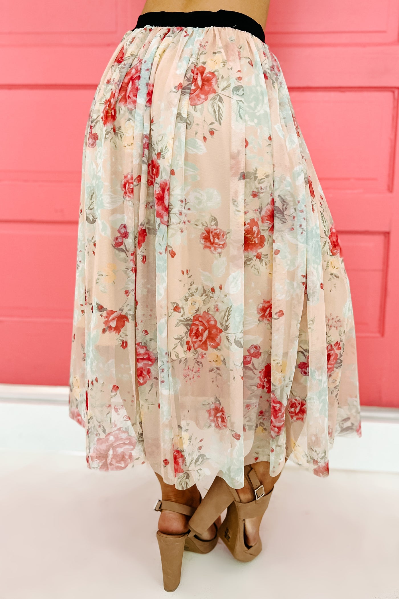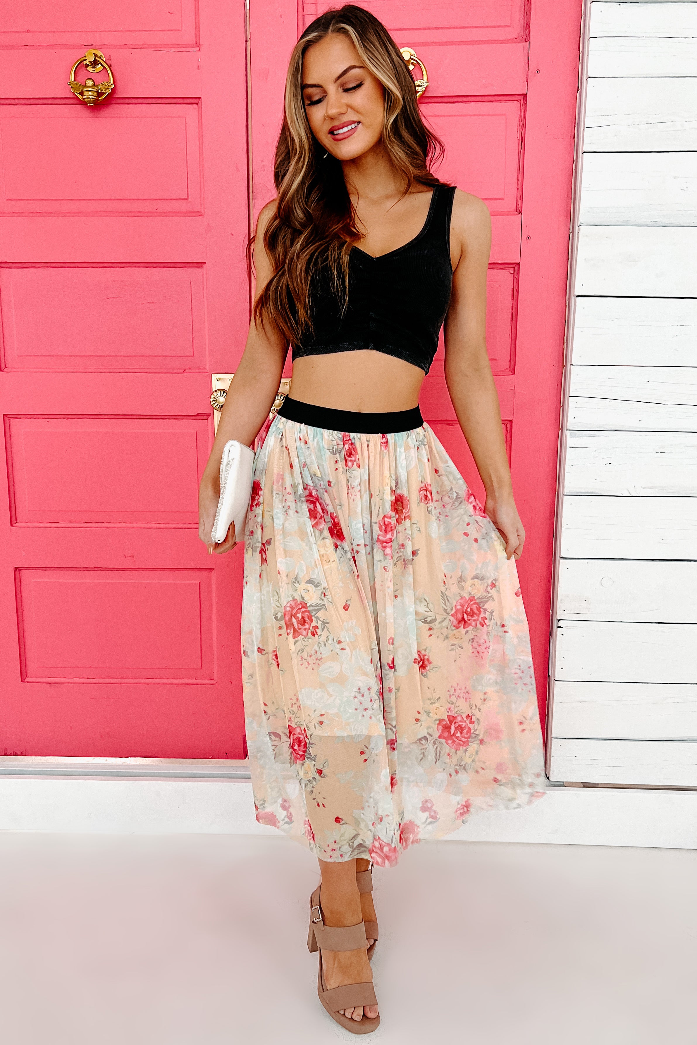 You Gotta Snag This Peach, Floral Midi Skirt! It'll Make You Feel Girly, Yet Beautiful!