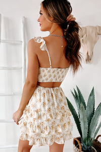 Floral Kisses Ruffled Floral Mini Dress (Cream/Mustard)
