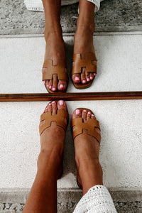 Florida Living Faux Croc H-Strap Sandals (Camel Croc)