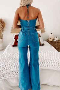 Focus On You Denim Halter Neck Jumpsuit (Denim)