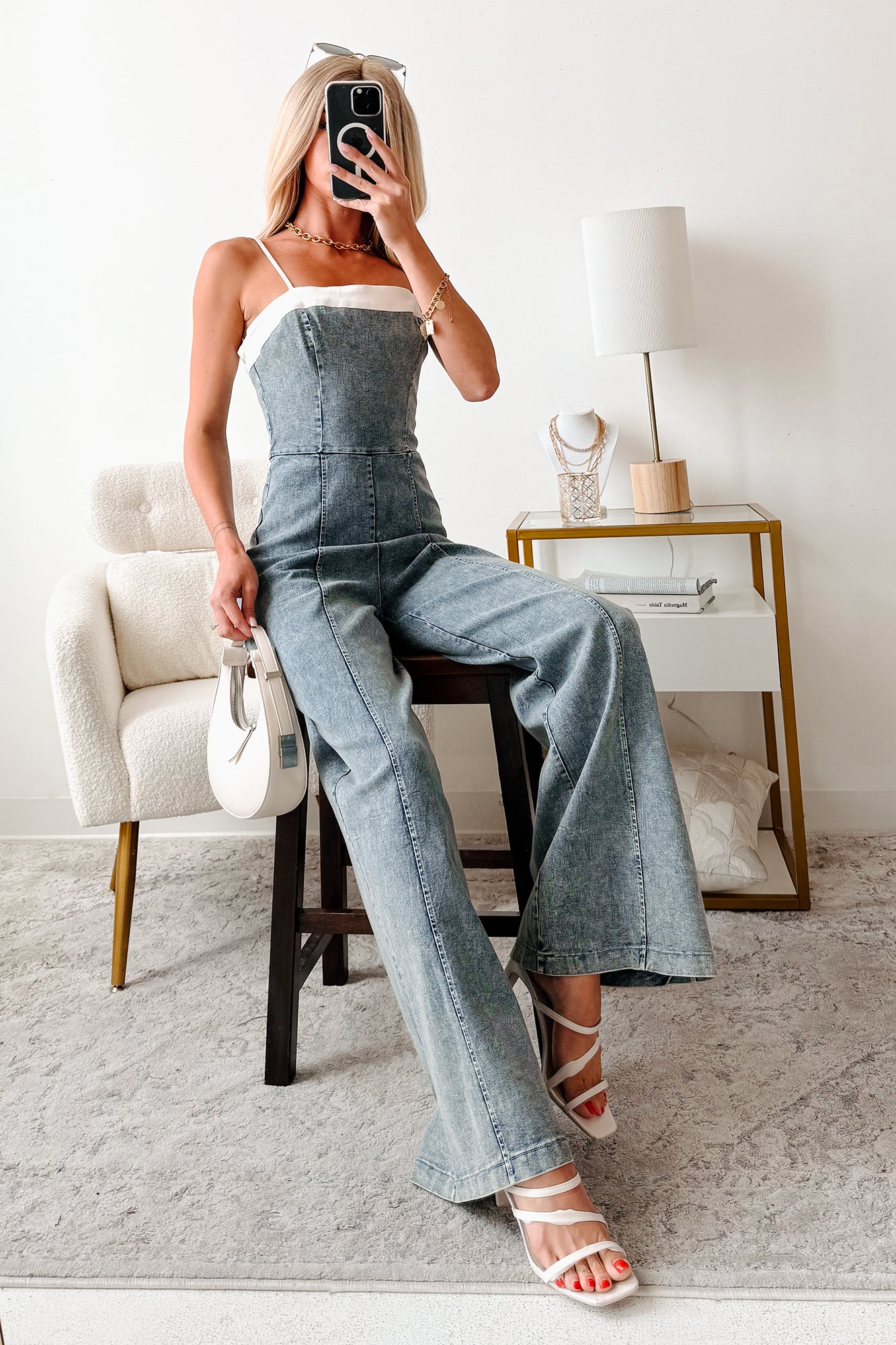 Follow The Feeling Acid Wash Denim Jumpsuit (Blue Acid/White) - NanaMacs