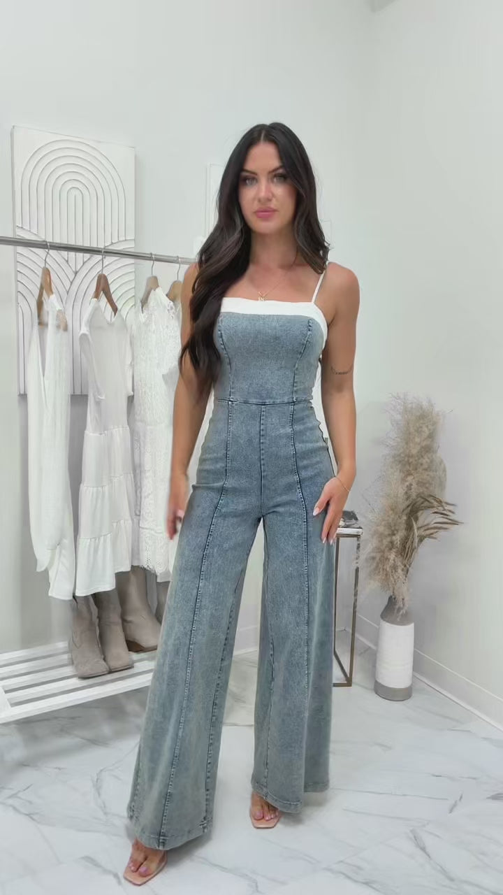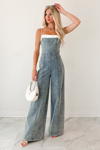 Follow The Feeling Acid Wash Denim Jumpsuit (Blue Acid/White)