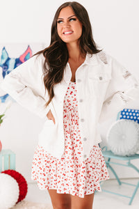 Follow You Anywhere Oversized Distressed Denim Jacket (White) - NanaMacs