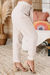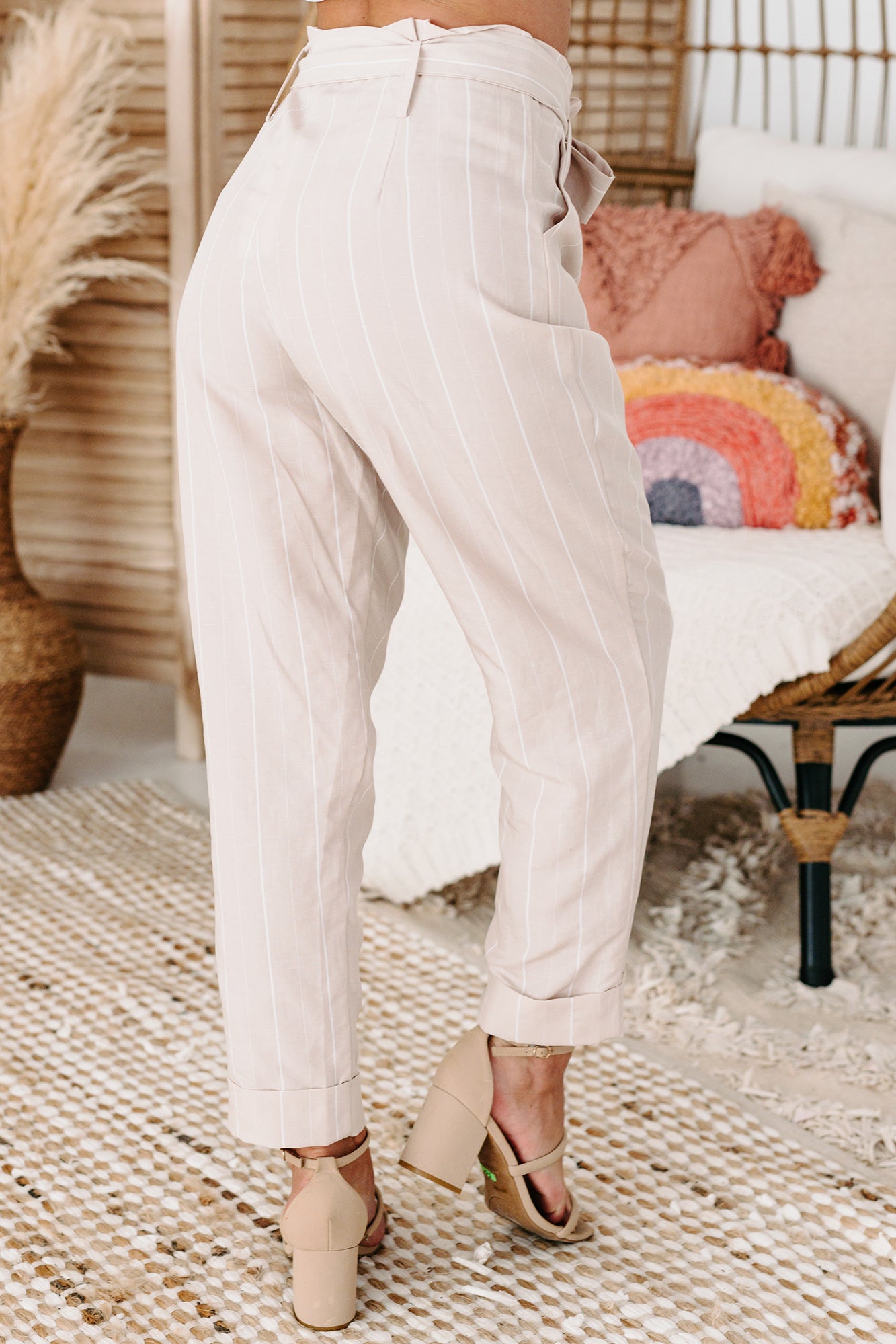 Follow Your Dreams Striped Paperbag Pants (Bone)