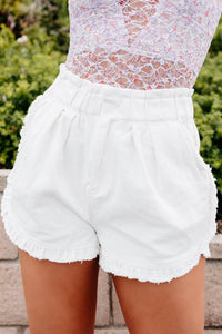 Forever Flattering Ruffled Denim Shorts (White) - NanaMacs