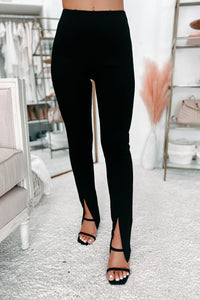 Forever Your Friend High Waisted Split Hem Leggings (Black)