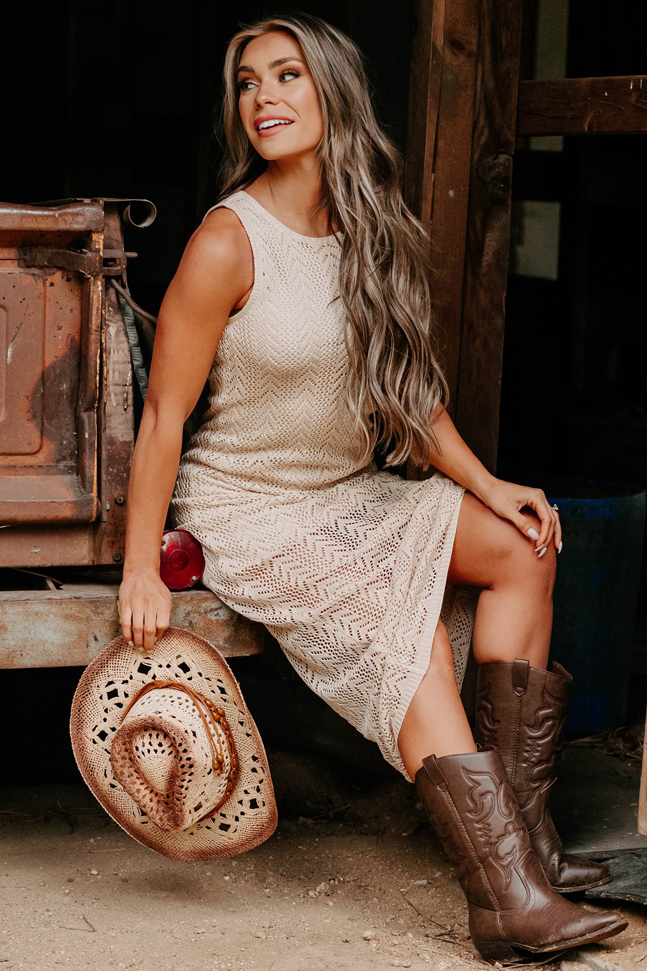 Fresh Tides Sleeveless Crochet Maxi Dress (Natural)
