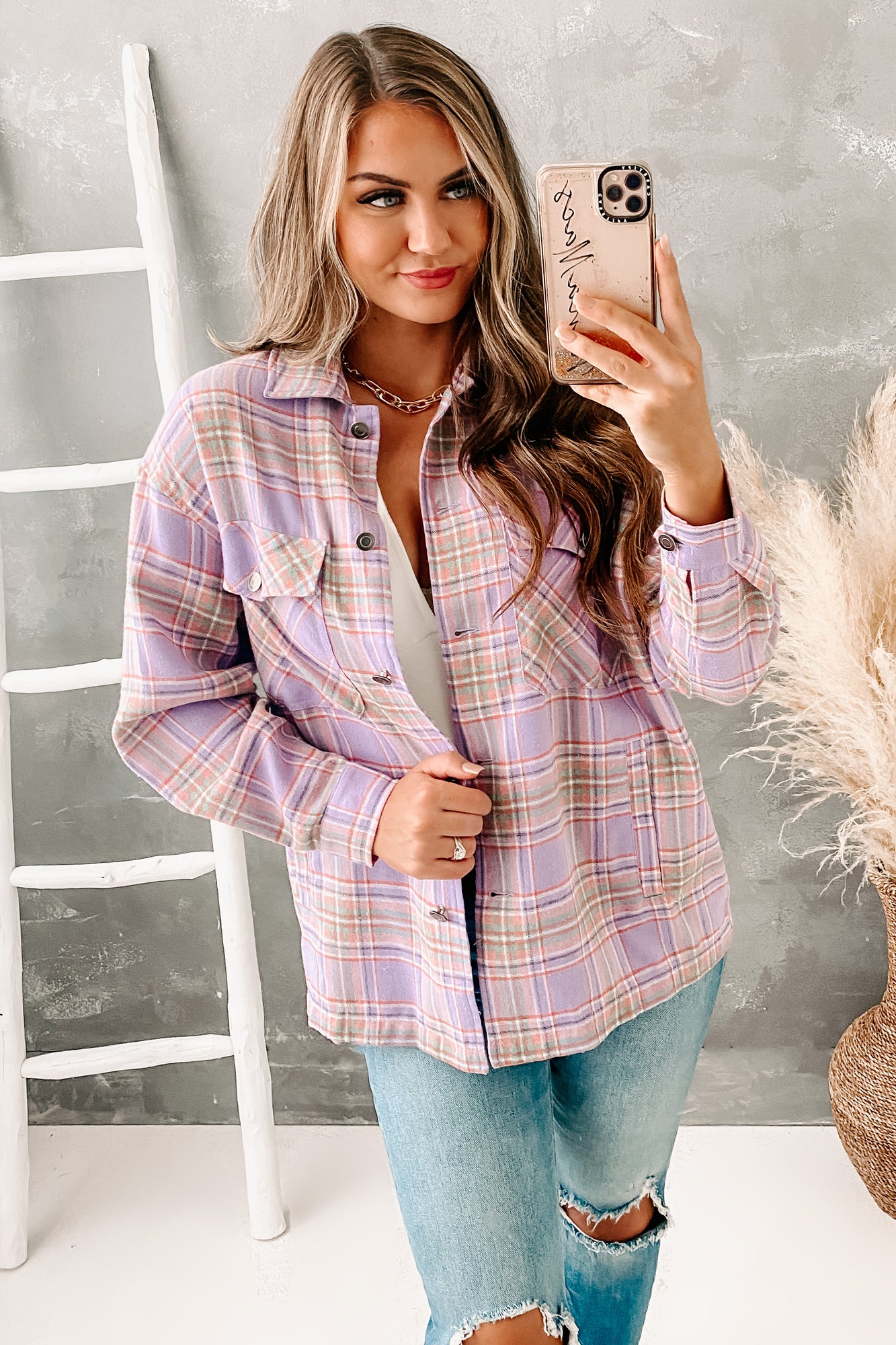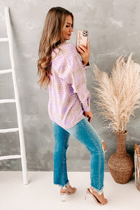Friday Feeling Plaid Button-Down Top (Purple Combo)