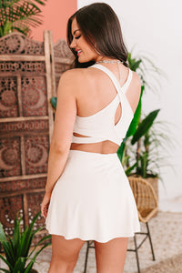 Friendly Exchange Shorts Lined Ribbed Cut-Out Mini Dress (Cream)