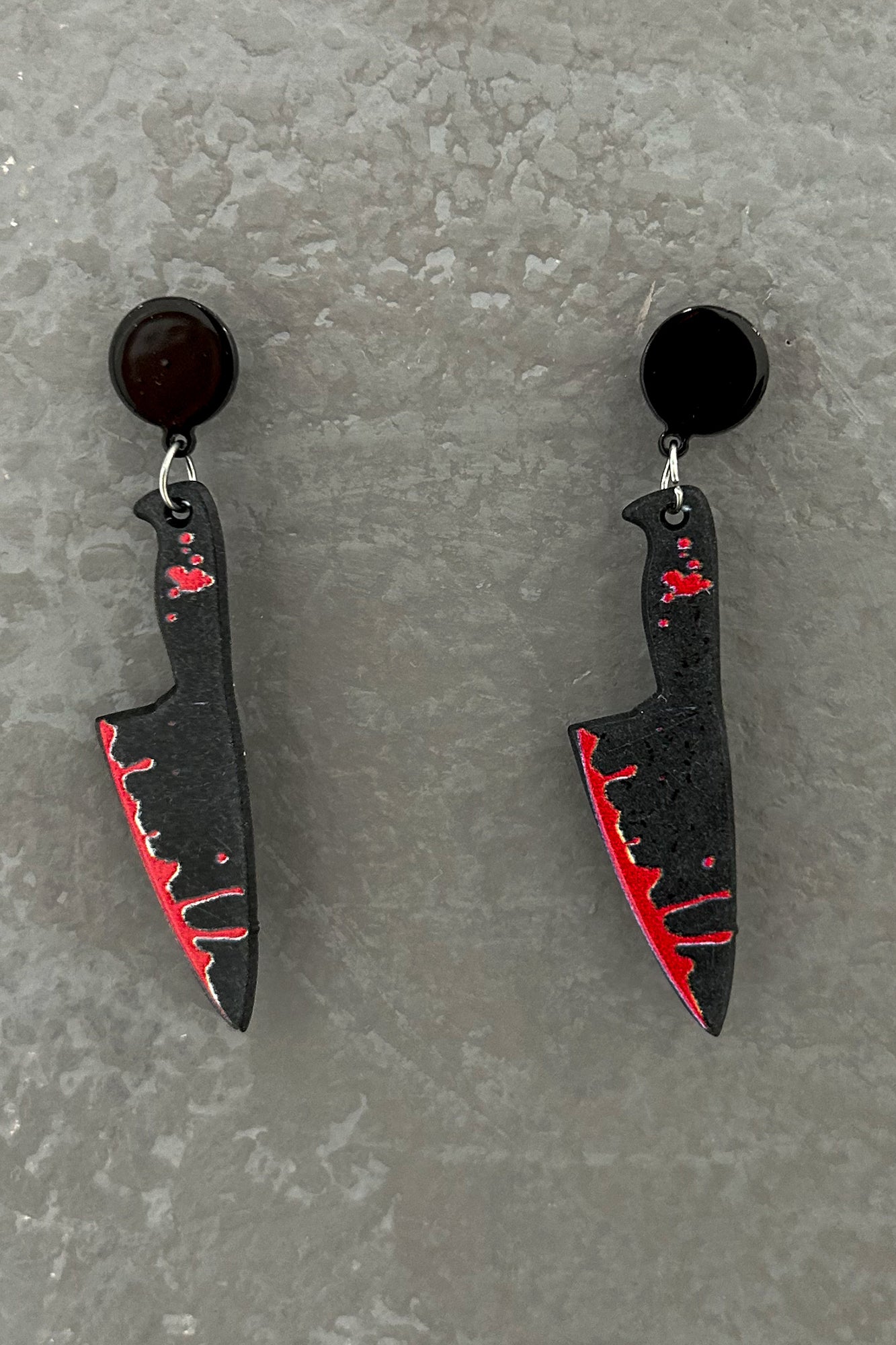 Frightfully Delightful Bloody Knife Earrings (Black) - NanaMacs