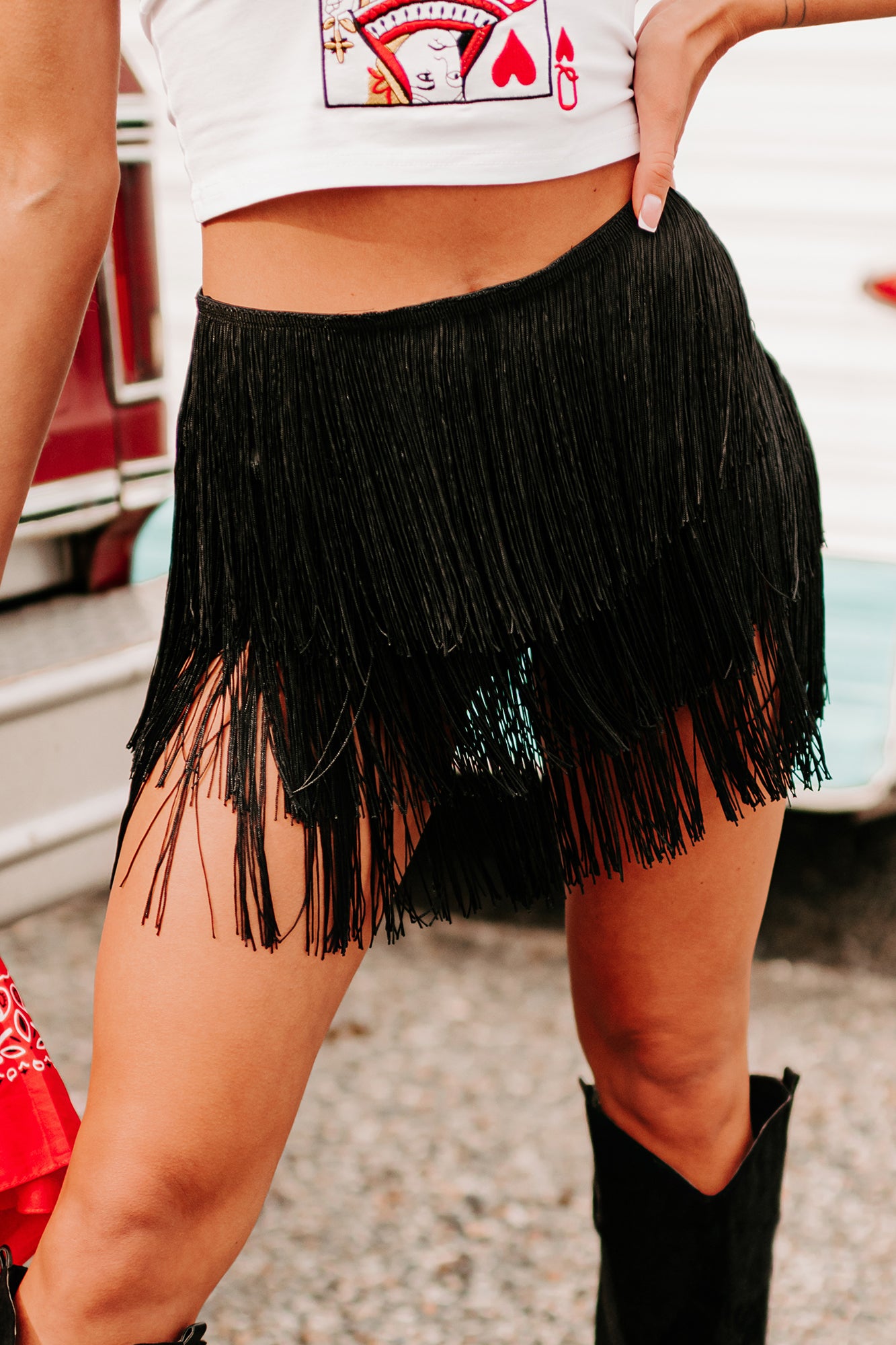 Fringe & Flirty Fringe Shorts (Black) - NanaMacs