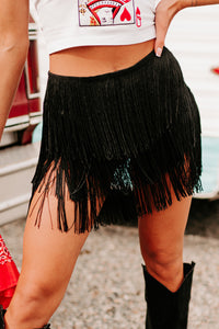 Fringe & Flirty Fringe Shorts (Black)