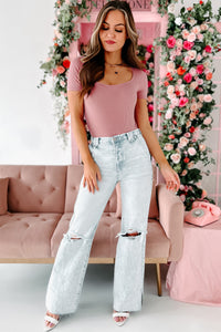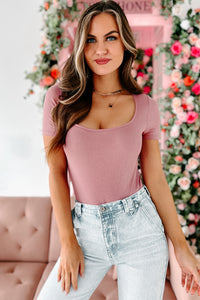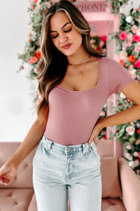 From Day One Ribbed Square Neck Bodysuit (Mauve)