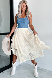 Frontier Fabulous Tiered Lace Midi Skirt (Ecru)