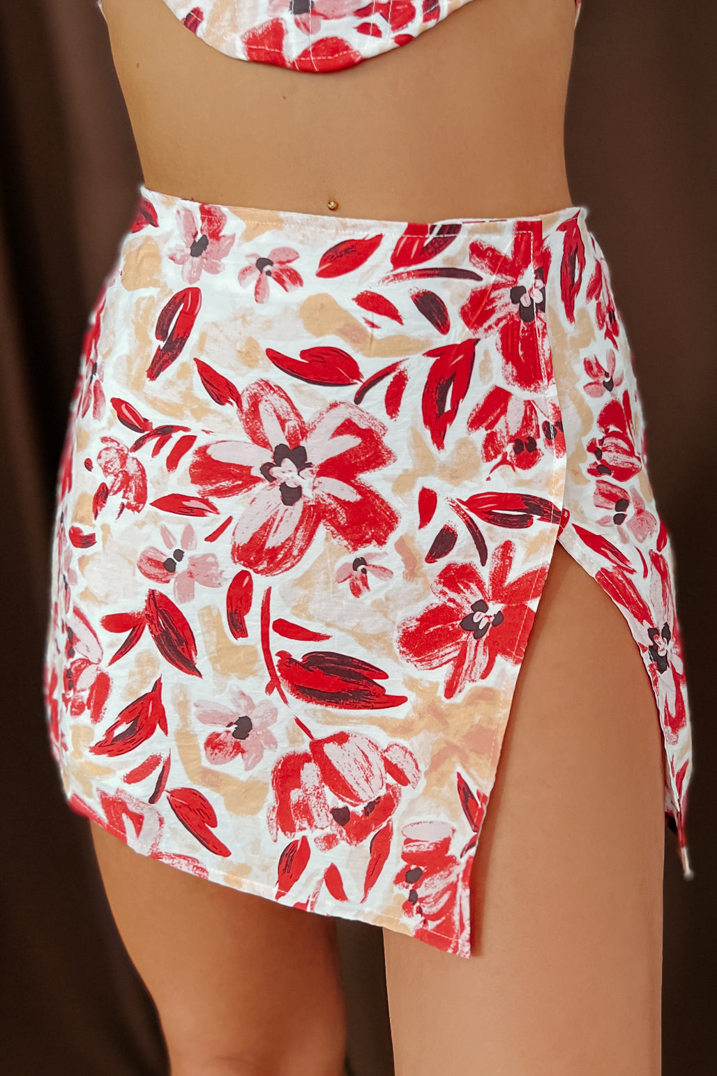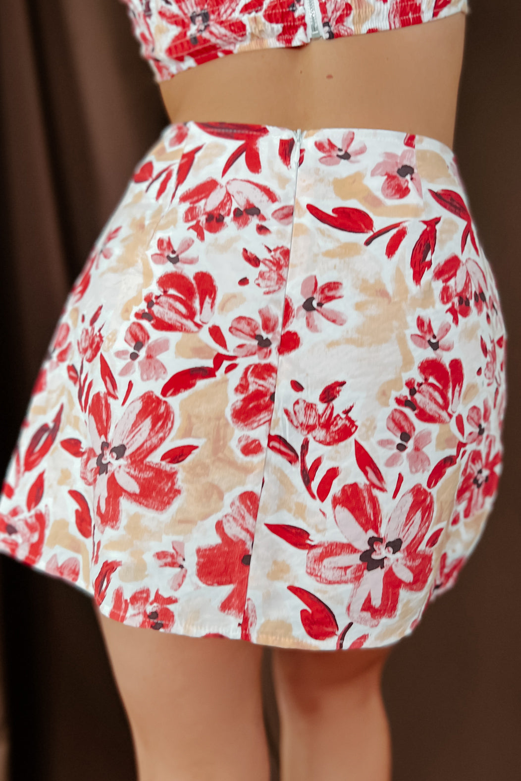 Fully Booked Floral Crop Top & Skirt Set (Ivory/Red) - NanaMacs