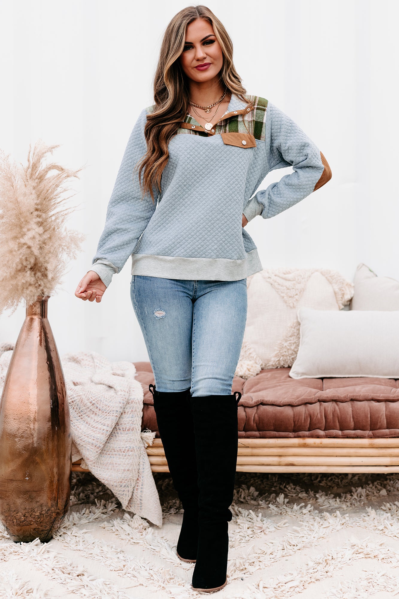 This Grey, Quilted Plaid Pullover Is Casual Perfection! You'll Wanna Wear It Every Game Day!
