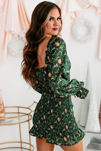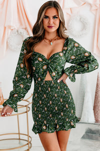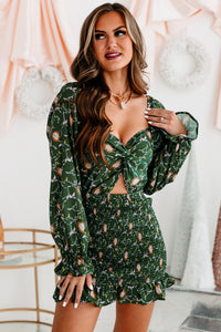 Garden Storm Floral Cut-Out Mini Dress (Hunter Green)