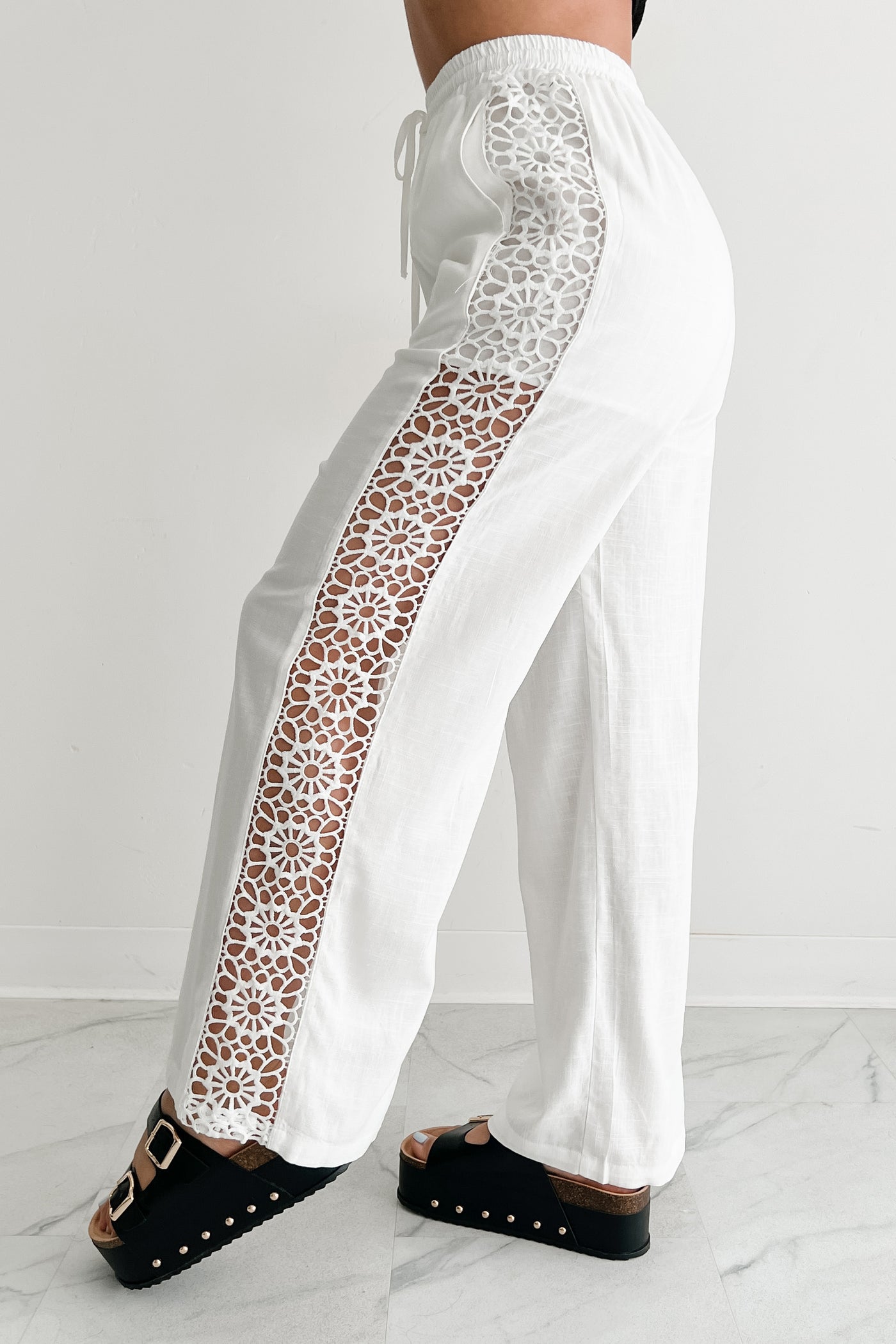 Gentle & Genuine Linen Crochet Wide Leg Pants (White) - NanaMacs