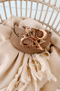 Genuinely Happy Faux Leather "XOXO" Buckled Belt (Taupe)
