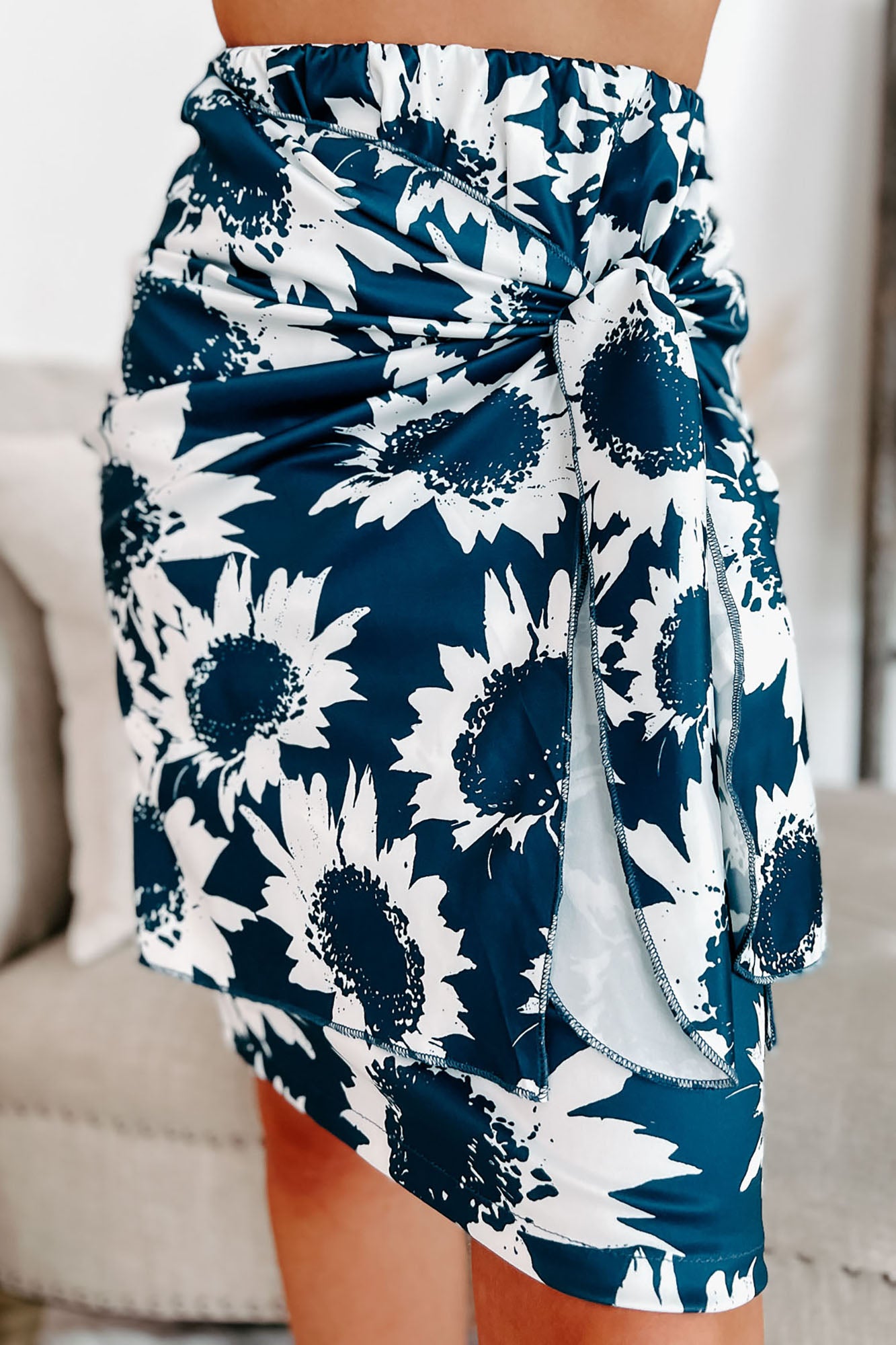 • Skirt: Elastic Waistband, Faux Wrap Tie Detail, Midi Length