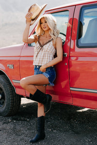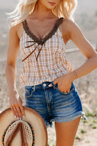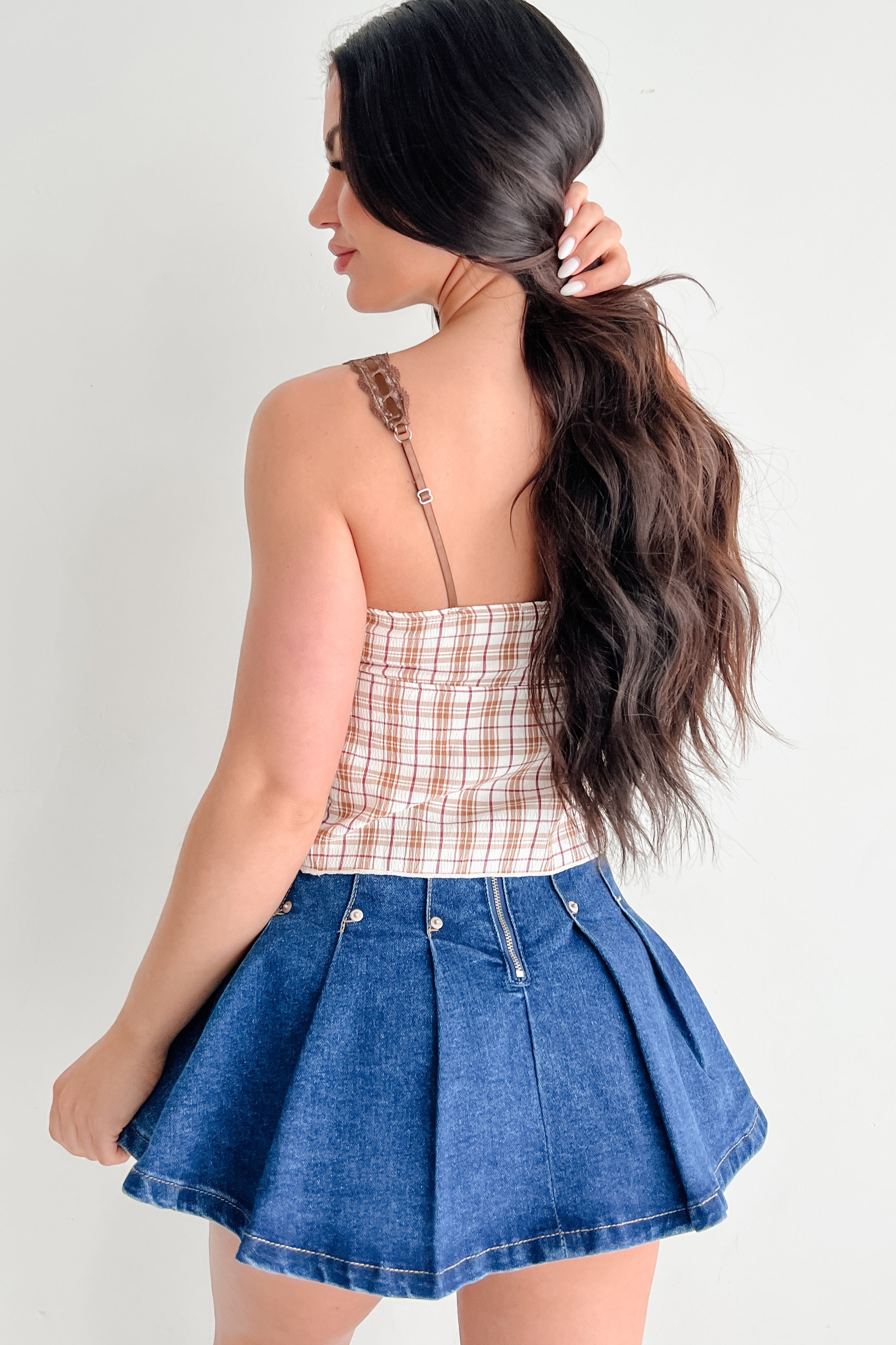 Girly & Dreamy Plaid Tank Top (Cream/Brown)