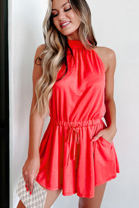 Given Kindness Open Back Halter Romper (Coral) - NanaMacs